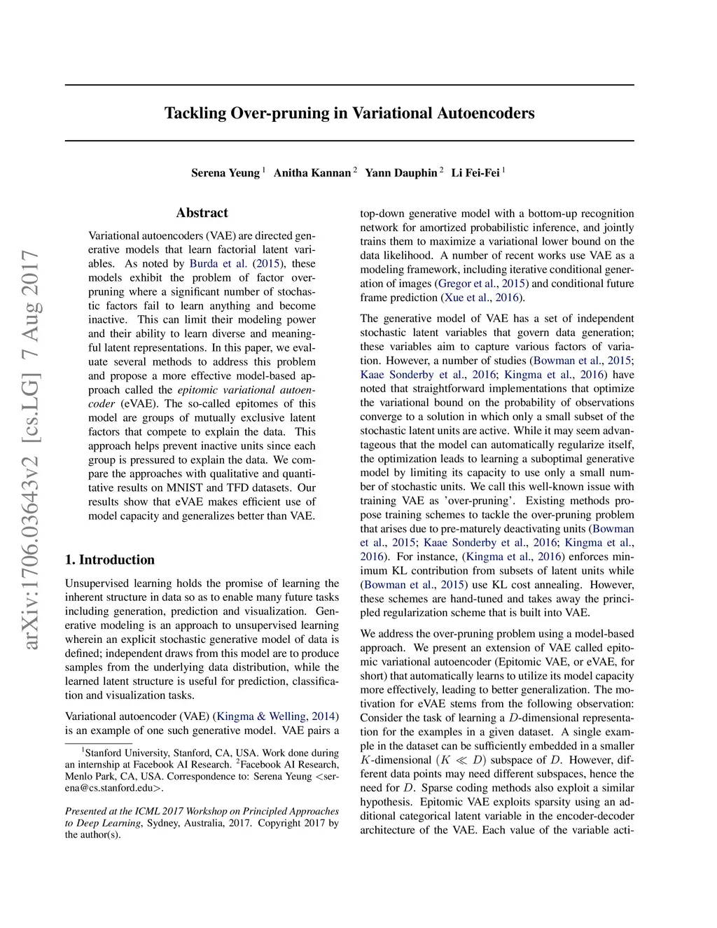 Tackling Over-pruning in Variational Autoencoders