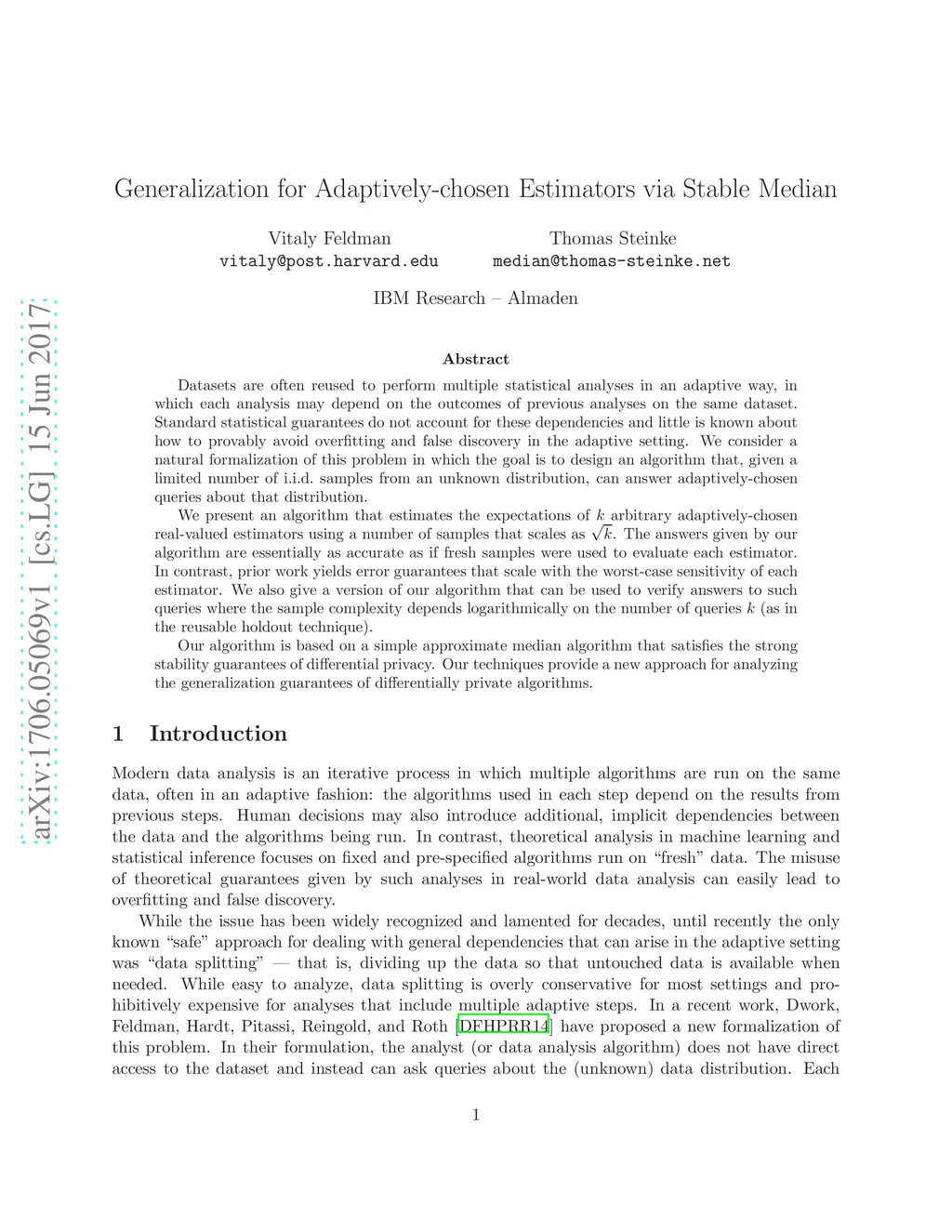 Generalization for Adaptively-chosen Estimators via Stable Median