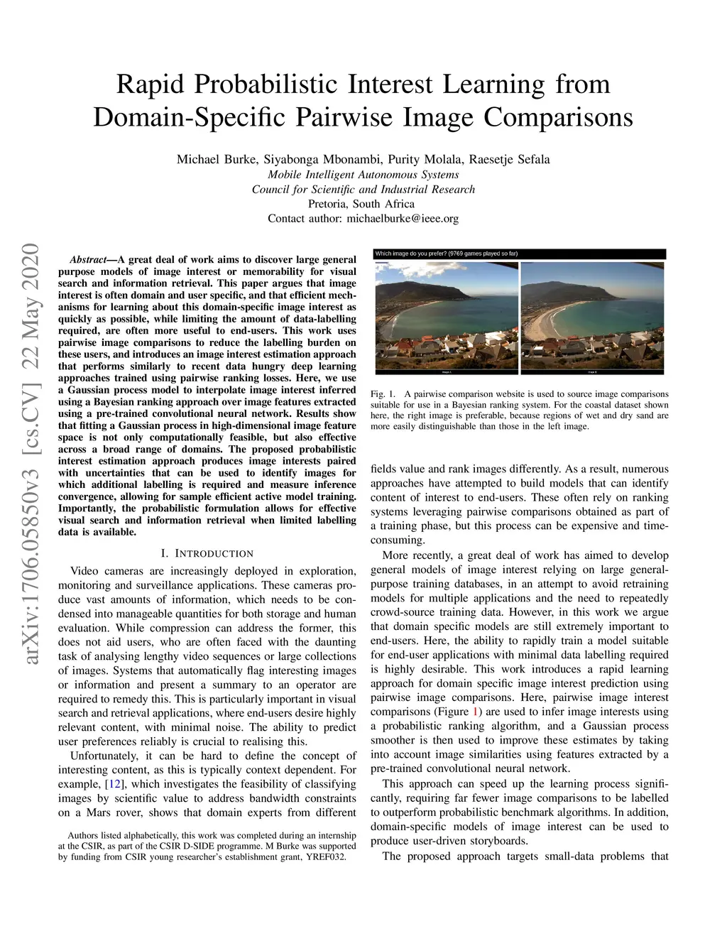 A great deal of work aims to discover large general purpose models of image interest or memorability for visual search and information retrieval. This paper argues that image interest is often domain and user specific, and that efficient mechanisms for learning about this domain-specific image interest as quickly as possible, while limiting the amount of data-labelling required, are often more useful to end-users. This work uses pairwise image comparisons to reduce the labelling burden on these users, and introduces an image interest estimation approach that performs similarly to recent data hungry deep learning approaches trained using pairwise ranking losses. Here, we use a Gaussian process model to interpolate image interest inferred using a Bayesian ranking approach over image features extracted using a pre-trained convolutional neural network. Results show that fitting a Gaussian process in high-dimensional image feature space is not only computationally feasible, but also effective across a broad range of domains. The proposed probabilistic interest estimation approach produces image interests paired with uncertainties that can be used to identify images for which additional labelling is required and measure inference convergence, allowing for sample efficient active model training. Importantly, the probabilistic formulation allows for effective visual search and information retrieval when limited labelling data is available.