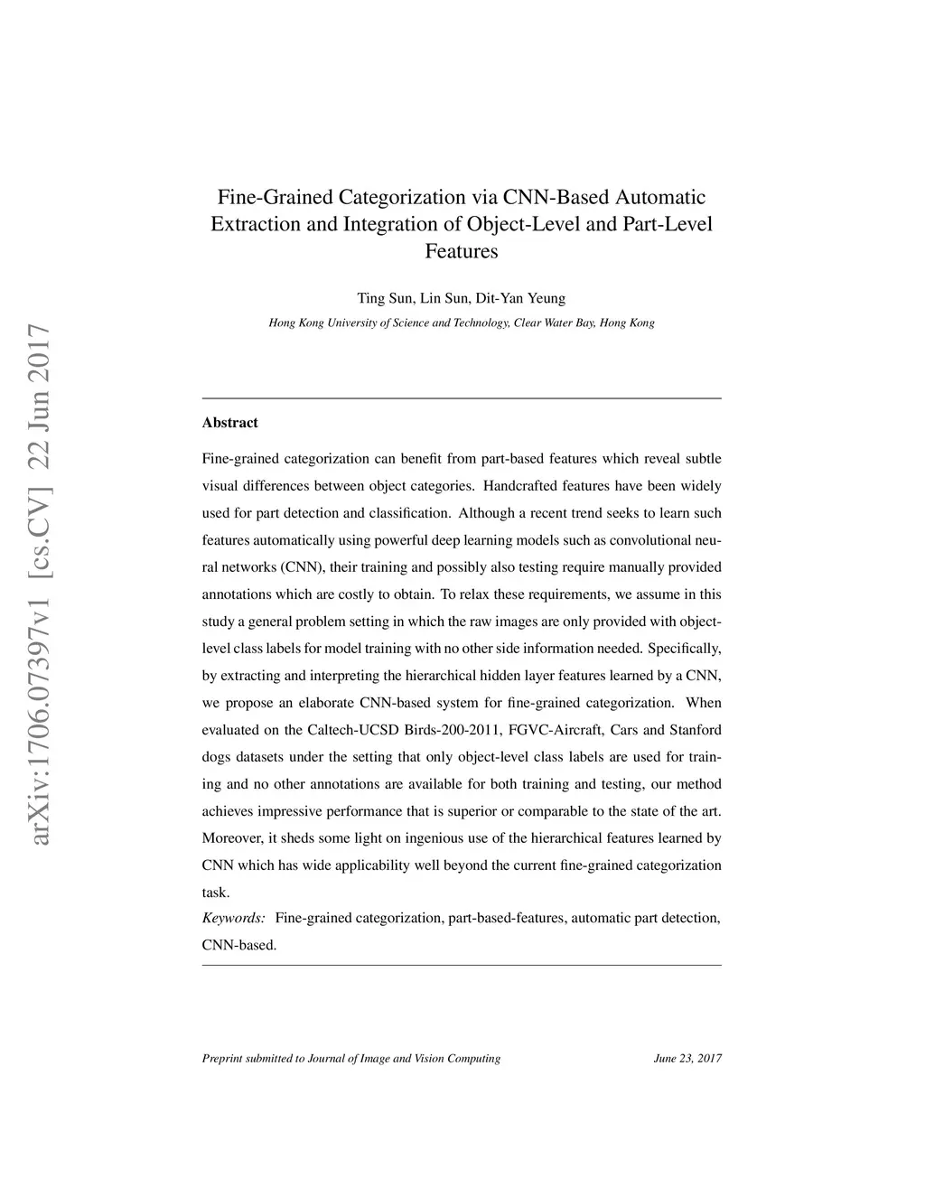 Fine-Grained Categorization via CNN-Based Automatic Extraction and