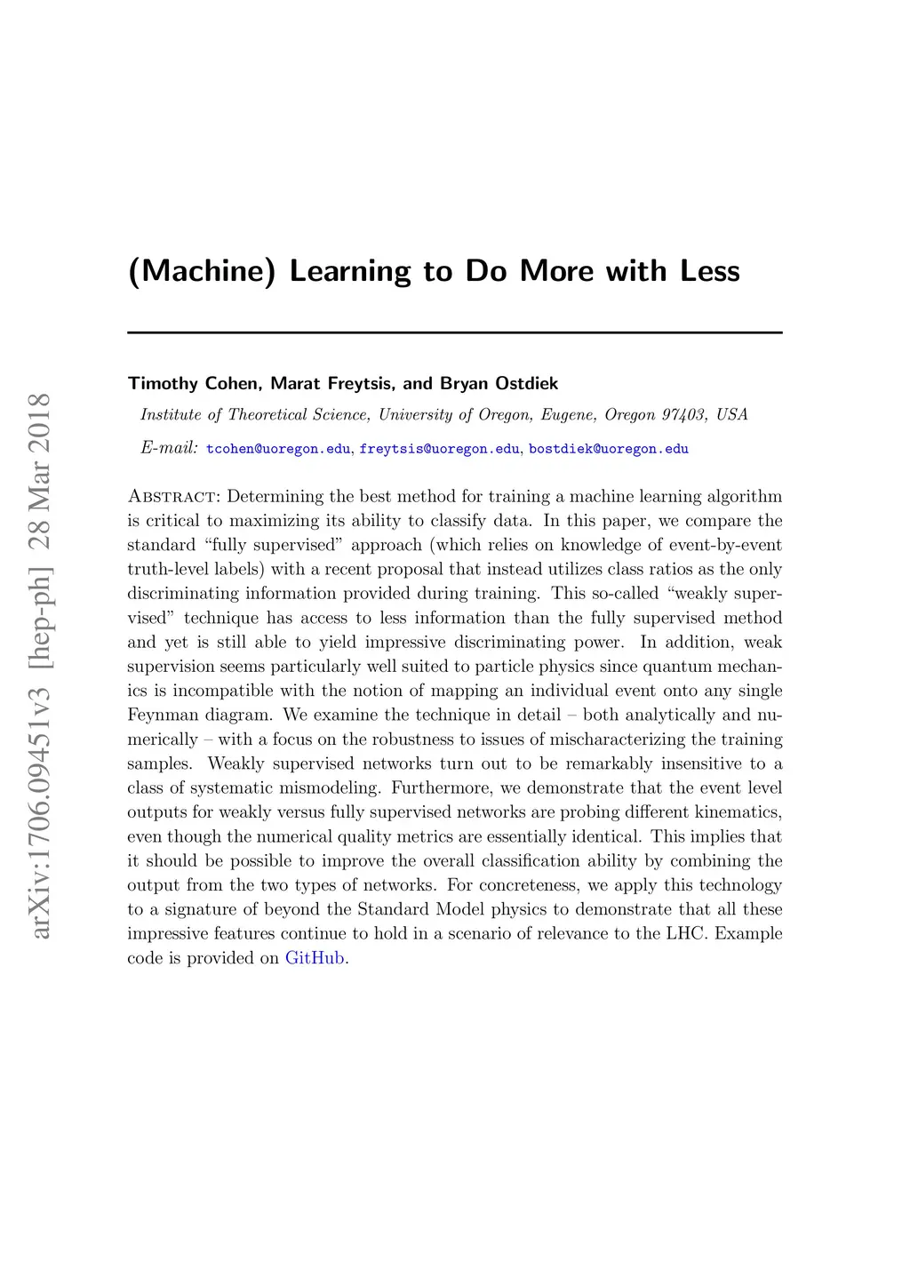 Determining the best method for training a machine learning algorithm is critical to maximizing its ability to classify data. In this paper, we compare the standard "fully supervised" approach (that relies on knowledge of event-by-event truth-level labels) with a recent proposal that instead utilizes class ratios as the only discriminating information provided during training. This so-called "weakly supervised" technique has access to less information than the fully supervised method and yet is still able to yield impressive discriminating power. In addition, weak supervision seems particularly well suited to particle physics since quantum mechanics is incompatible with the notion of mapping an individual event onto any single Feynman diagram. We examine the technique in detail -- both analytically and numerically -- with a focus on the robustness to issues of mischaracterizing the training samples. Weakly supervised networks turn out to be remarkably insensitive to systematic mismodeling. Furthermore, we demonstrate that the event level outputs for weakly versus fully supervised networks are probing different kinematics, even though the numerical quality metrics are essentially identical. This implies that it should be possible to improve the overall classification ability by combining the output from the two types of networks. For concreteness, we apply this technology to a signature of beyond the Standard Model physics to demonstrate that all these impressive features continue to hold in a scenario of relevance to the LHC.