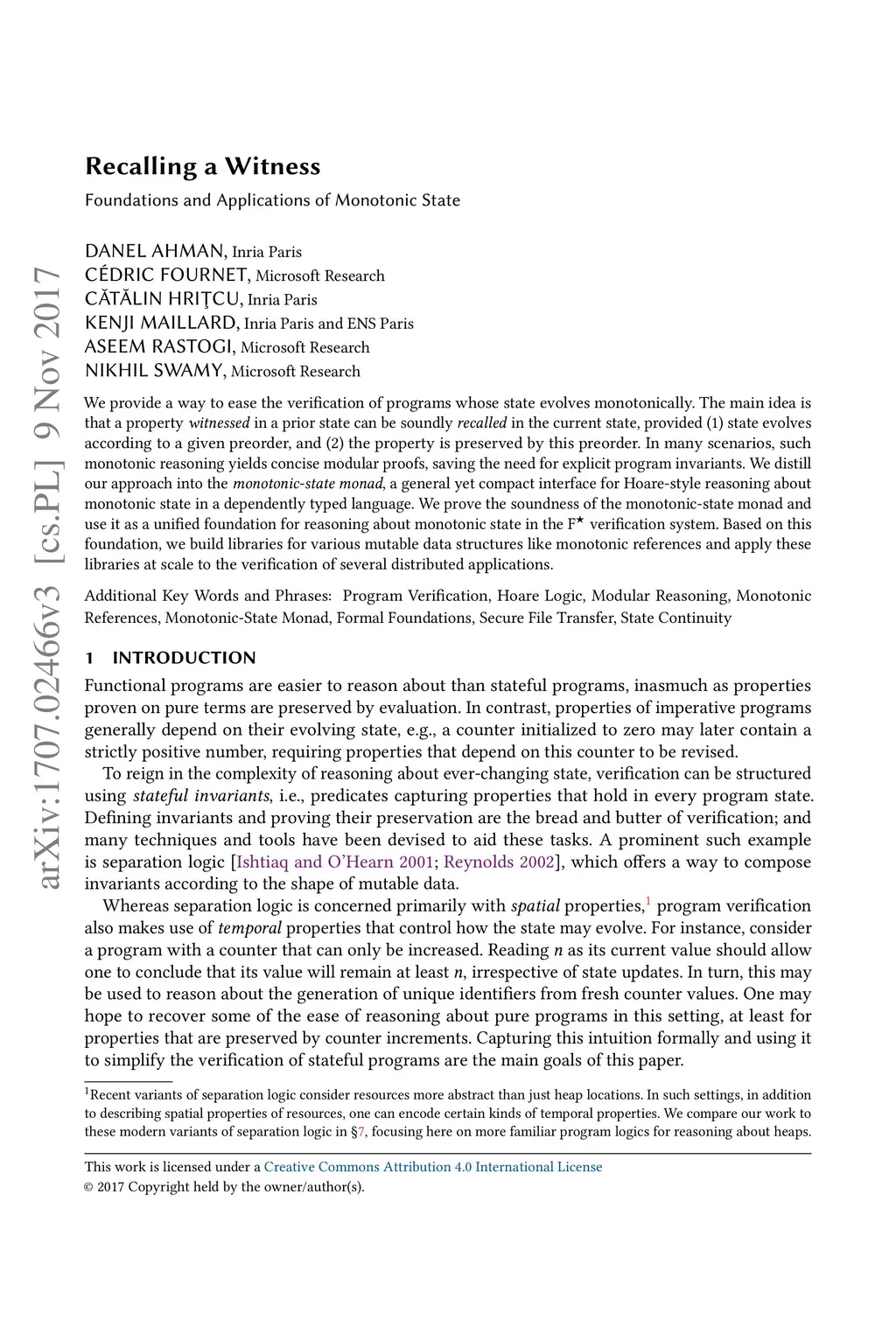 Recalling a Witness: Foundations and Applications of Monotonic State
