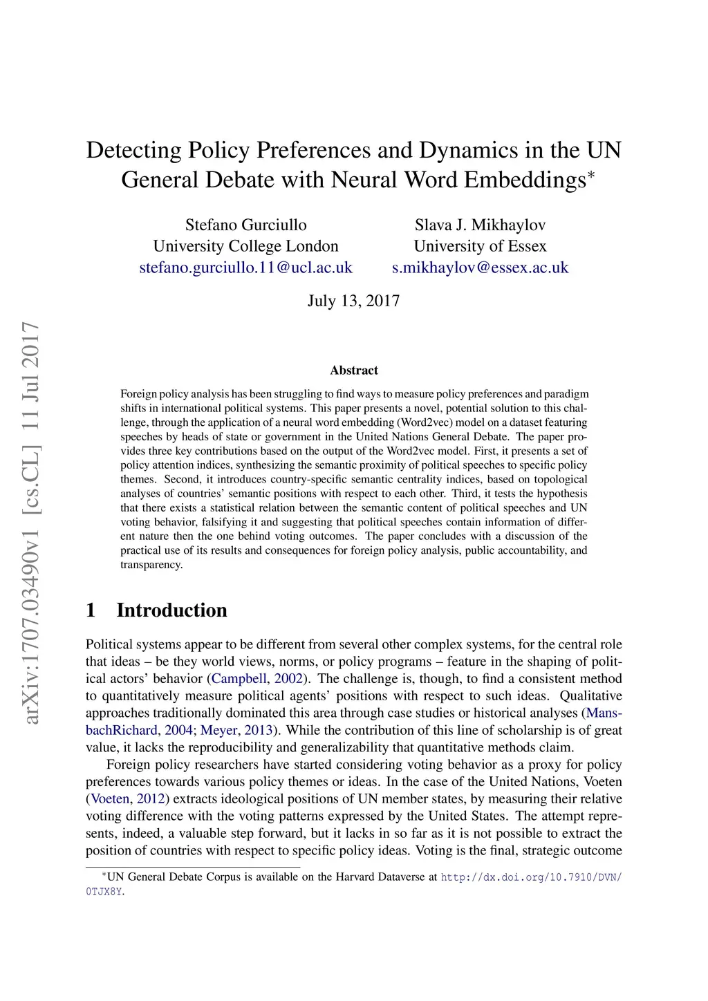 Detecting Policy Preferences and Dynamics in the UN General Debate with