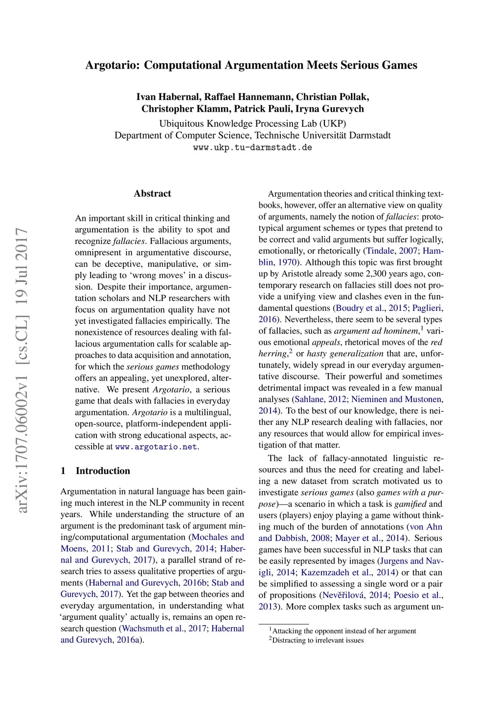 Argotario: Computational Argumentation Meets Serious Games
