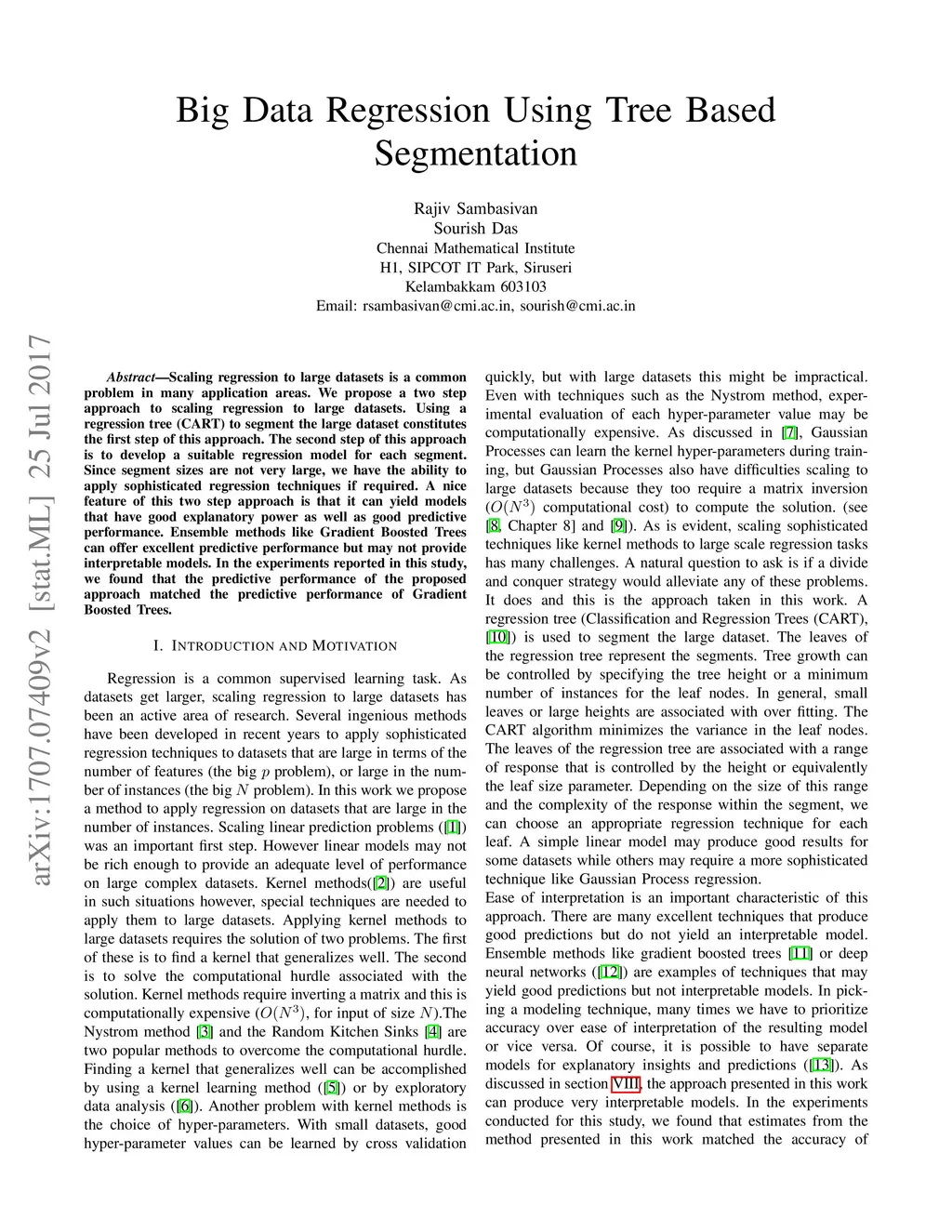 Big Data Regression Using Tree Based Segmentation