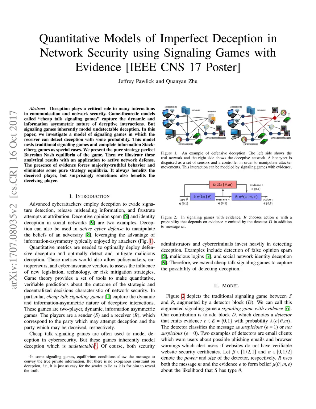Quantitative Models of Imperfect Deception in Network Security using