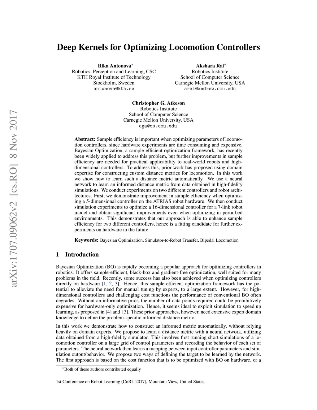 Deep Kernels for Optimizing Locomotion Controllers