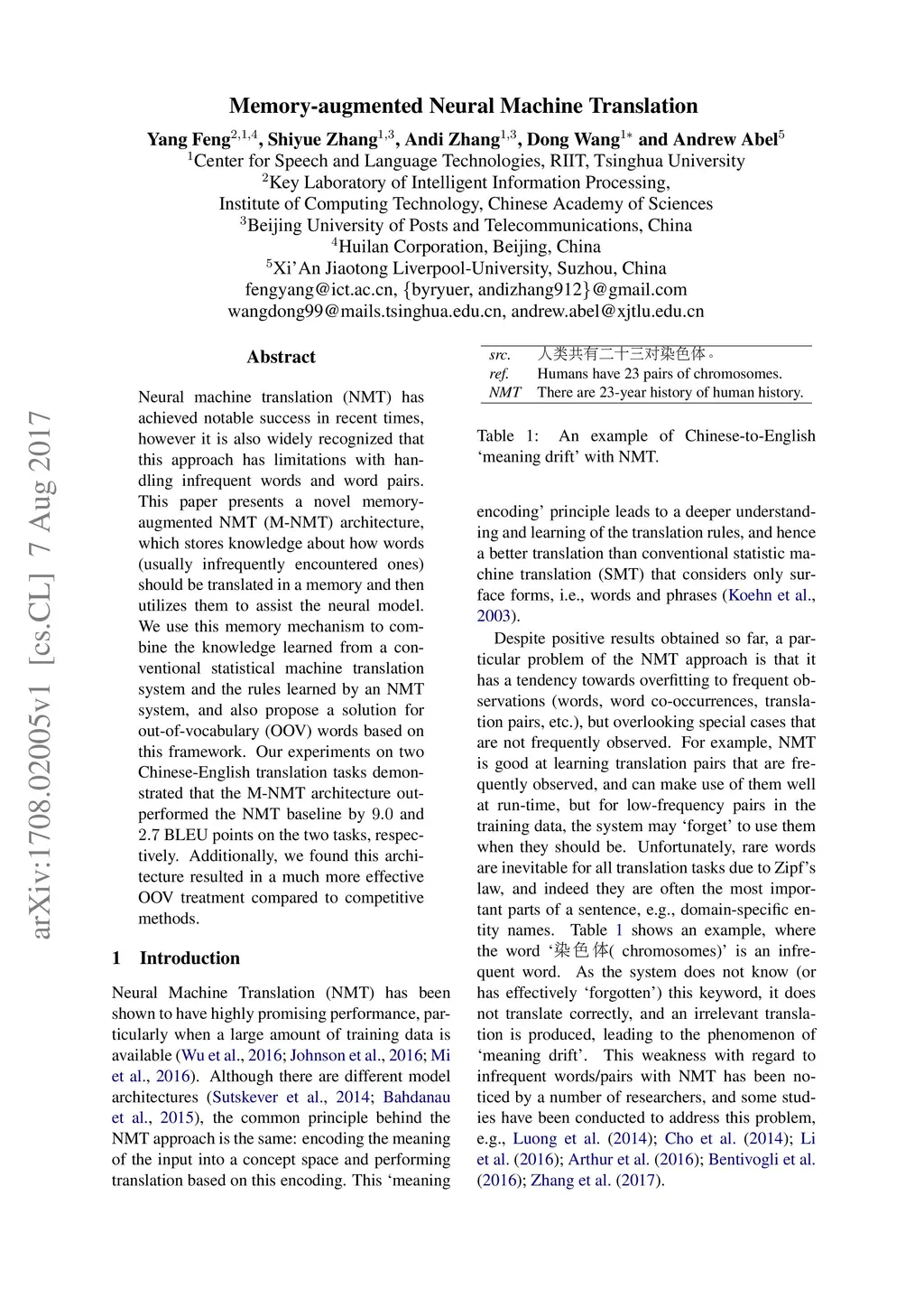 Neural machine translation (NMT) has achieved notable success in recent times, however it is also widely recognized that this approach has limitations with handling infrequent words and word pairs. This paper presents a novel memory-augmented NMT (M-NMT) architecture, which stores knowledge about how words (usually infrequently encountered ones) should be translated in a memory and then utilizes them to assist the neural model. We use this memory mechanism to combine the knowledge learned from a conventional statistical machine translation system and the rules learned by an NMT system, and also propose a solution for out-of-vocabulary (OOV) words based on this framework. Our experiments on two Chinese-English translation tasks demonstrated that the M-NMT architecture outperformed the NMT baseline by and BLEU points on the two tasks, respectively. Additionally, we found this architecture resulted in a much more effective OOV treatment compared to competitive methods.