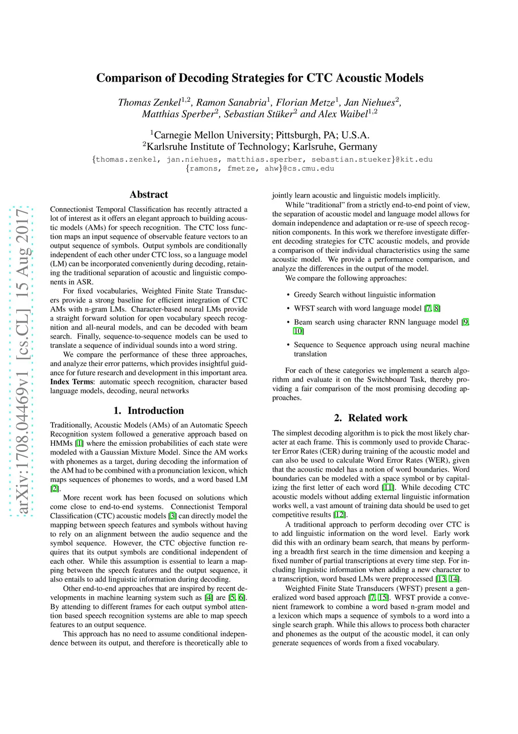 Comparison of Decoding Strategies for CTC Acoustic Models