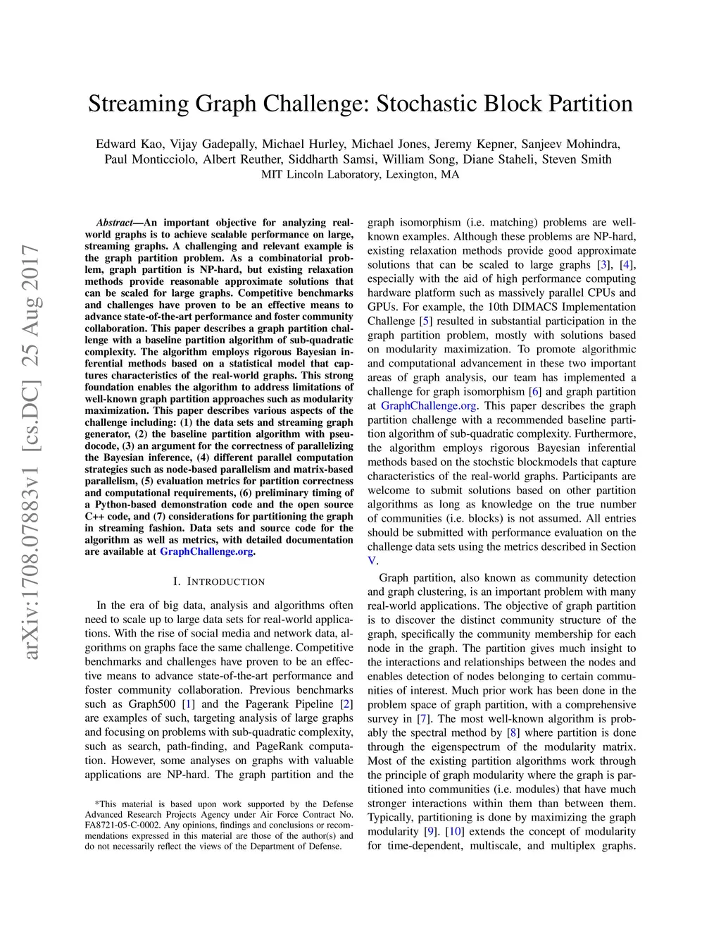 An important objective for analyzing real-world graphs is to achieve scalable performance on large, streaming graphs. A challenging and relevant example is the graph partition problem. As a combinatorial problem, graph partition is NP-hard, but existing relaxation methods provide reasonable approximate solutions that can be scaled for large graphs. Competitive benchmarks and challenges have proven to be an effective means to advance state-of-the-art performance and foster community collaboration. This paper describes a graph partition challenge with a baseline partition algorithm of sub-quadratic complexity. The algorithm employs rigorous Bayesian inferential methods based on a statistical model that captures characteristics of the real-world graphs. This strong foundation enables the algorithm to address limitations of well-known graph partition approaches such as modularity maximization. This paper describes various aspects of the challenge including: (1) the data sets and streaming graph generator, (2) the baseline partition algorithm with pseudocode, (3) an argument for the correctness of parallelizing the Bayesian inference, (4) different parallel computation strategies such as node-based parallelism and matrix-based parallelism, (5) evaluation metrics for partition correctness and computational requirements, (6) preliminary timing of a Python-based demonstration code and the open source C++ code, and (7) considerations for partitioning the graph in streaming fashion. Data sets and source code for the algorithm as well as metrics, with detailed documentation are available at GraphChallenge.org.