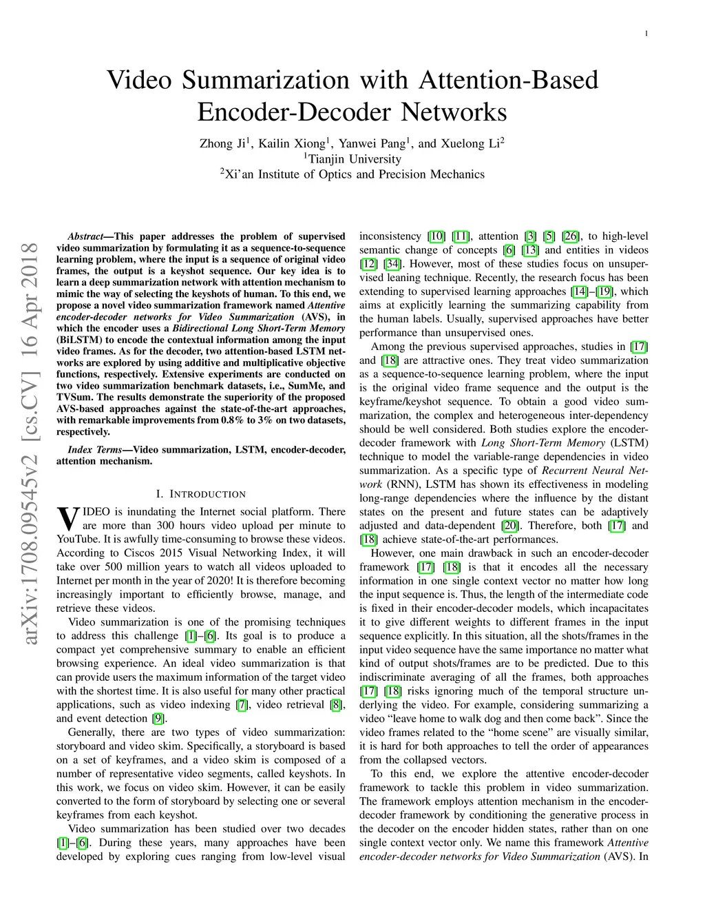 Video Summarization with Attention-Based Encoder-Decoder Networks