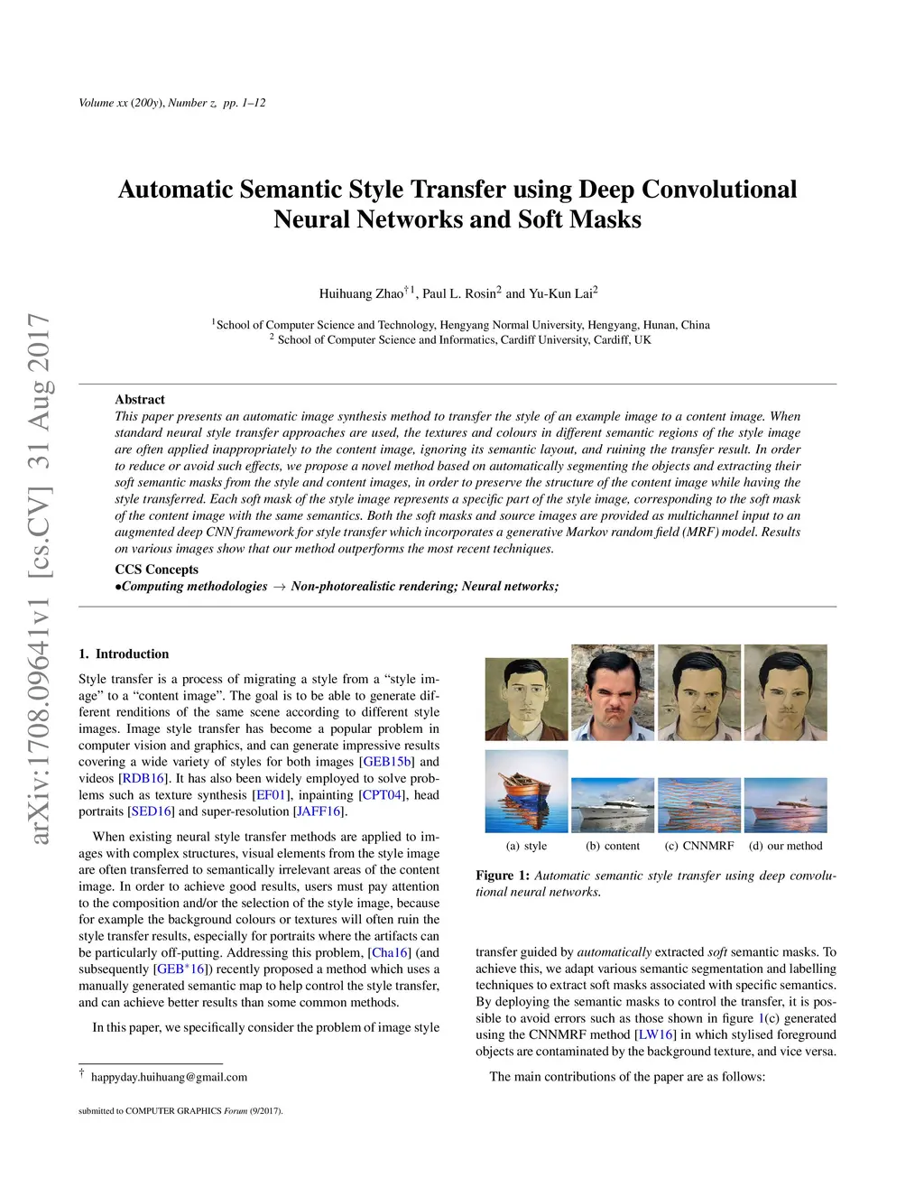 Automatic Semantic Style Transfer using Deep Convolutional Neural
