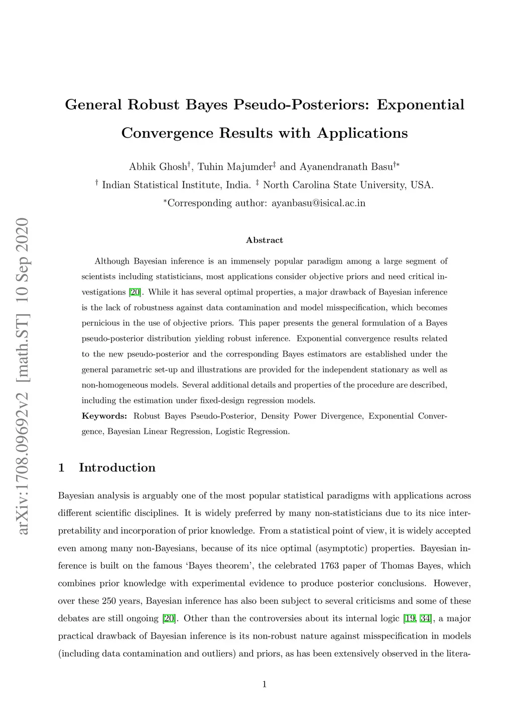 Although Bayesian inference is an immensely popular paradigm among a large segment of scientists including statisticians, most applications consider objective priors and need critical investigations (Efron, 2013, Science). While it has several optimal properties, a major drawback of Bayesian inference is the lack of robustness against data contamination and model misspecification, which becomes pernicious in the use of objective priors. This paper presents the general formulation of a Bayes pseudo-posterior distribution yielding robust inference. Exponential convergence results related to the new pseudo-posterior and the corresponding Bayes estimators are established under the general parametric set-up and illustrations are provided for the independent stationary as well as non-homogeneous models. Several additional details and properties of the procedure are described, including the estimation under fixed-design regression models.
