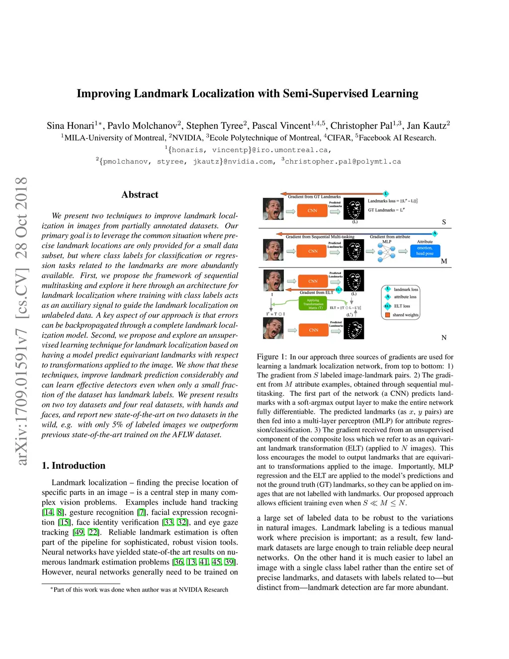 We present two techniques to improve landmark localization in images from partially annotated datasets. Our primary goal is to leverage the common situation where precise landmark locations are only provided for a small data subset, but where class labels for classification or regression tasks related to the landmarks are more abundantly available. First, we propose the framework of sequential multitasking and explore it here through an architecture for landmark localization where training with class labels acts as an auxiliary signal to guide the landmark localization on unlabeled data. A key aspect of our approach is that errors can be backpropagated through a complete landmark localization model. Second, we propose and explore an unsupervised learning technique for landmark localization based on having a model predict equivariant landmarks with respect to transformations applied to the image. We show that these techniques, improve landmark prediction considerably and can learn effective detectors even when only a small fraction of the dataset has landmark labels. We present results on two toy datasets and four real datasets, with hands and faces, and report new state-of-the-art on two datasets in the wild, e.g. with only 5\% of labeled images we outperform previous state-of-the-art trained on the AFLW dataset.