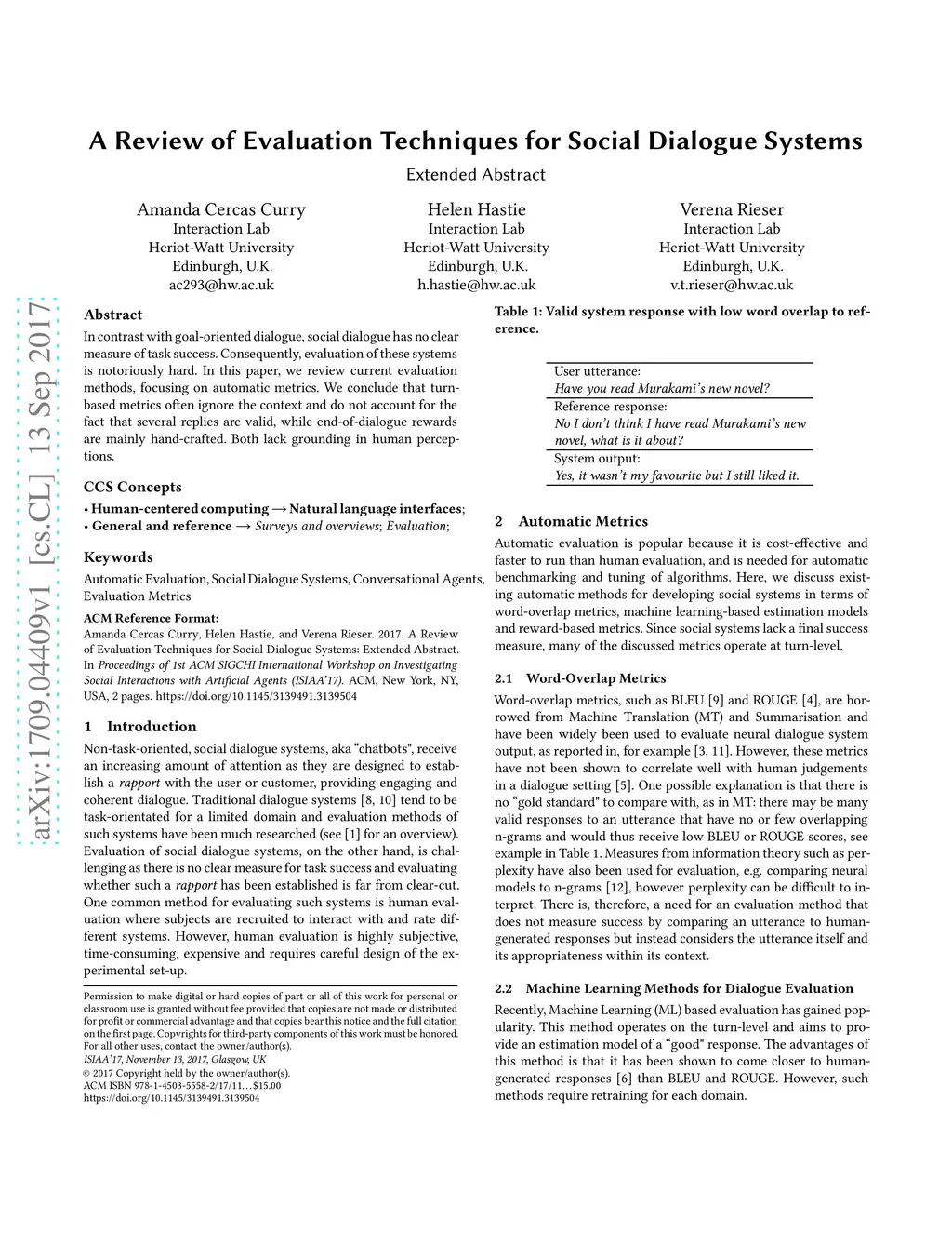 A Review of Evaluation Techniques for Social Dialogue Systems