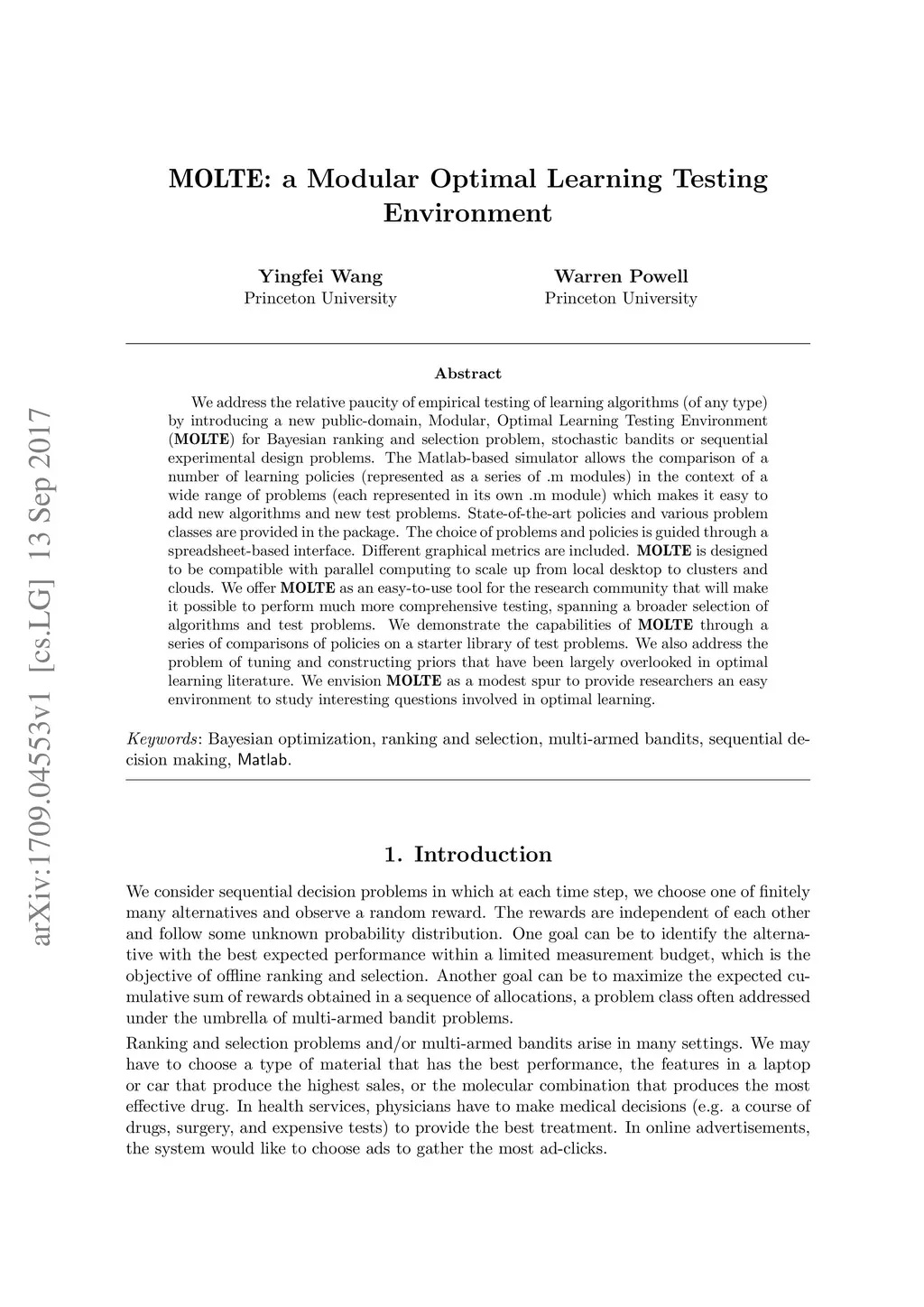 MOLTE: a Modular Optimal Learning Testing Environment