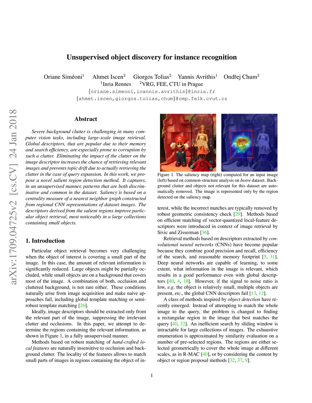 Severe background clutter is challenging in many computer vision tasks, including large-scale image retrieval. Global descriptors, that are popular due to their memory and search efficiency, are especially prone to corruption by such a clutter. Eliminating the impact of the clutter on the image descriptor increases the chance of retrieving relevant images and prevents topic drift due to actually retrieving the clutter in the case of query expansion. In this work, we propose a novel salient region detection method. It captures, in an unsupervised manner, patterns that are both discriminative and common in the dataset. Saliency is based on a centrality measure of a nearest neighbor graph constructed from regional CNN representations of dataset images. The descriptors derived from the salient regions improve particular object retrieval, most noticeably in a large collections containing small objects.