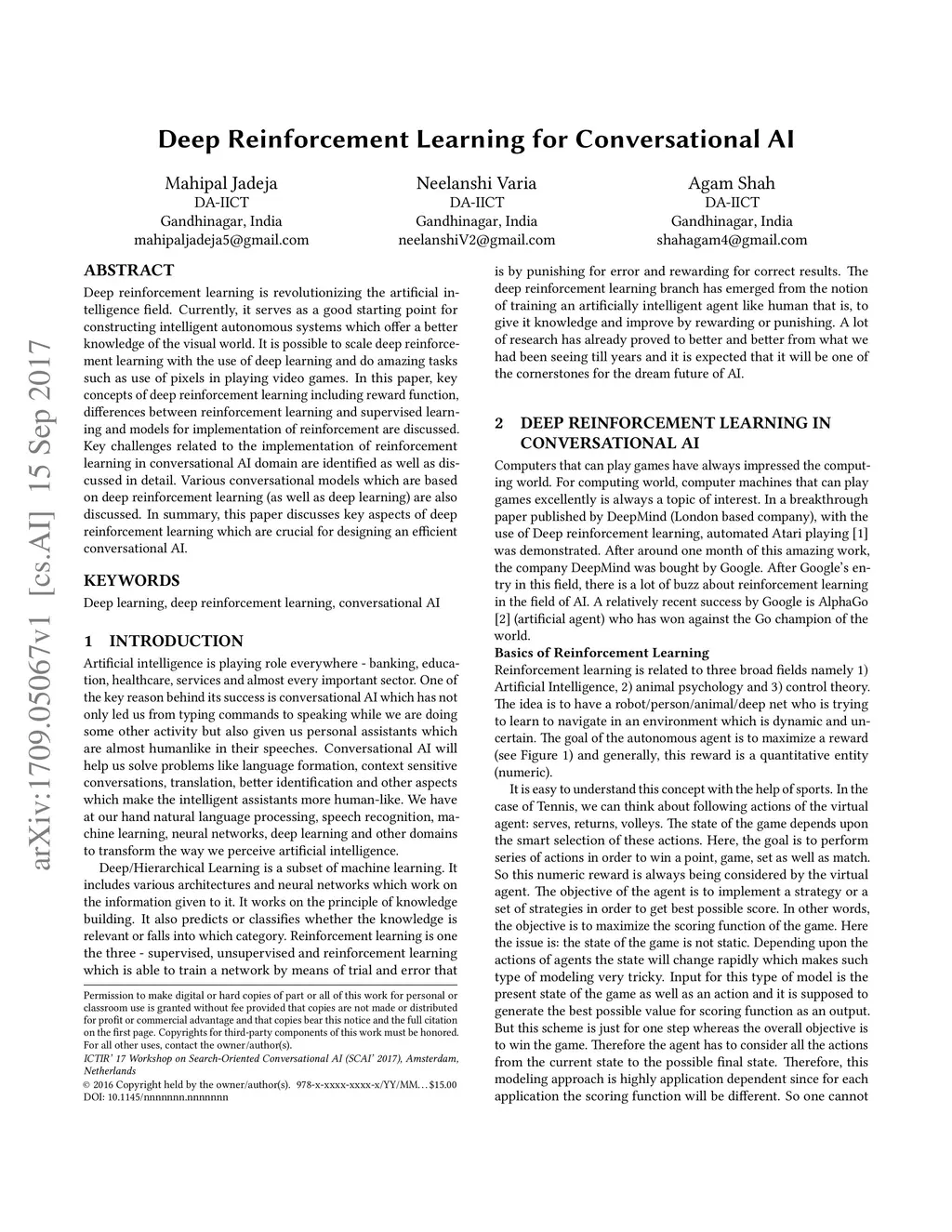 Deep Reinforcement Learning for Conversational AI