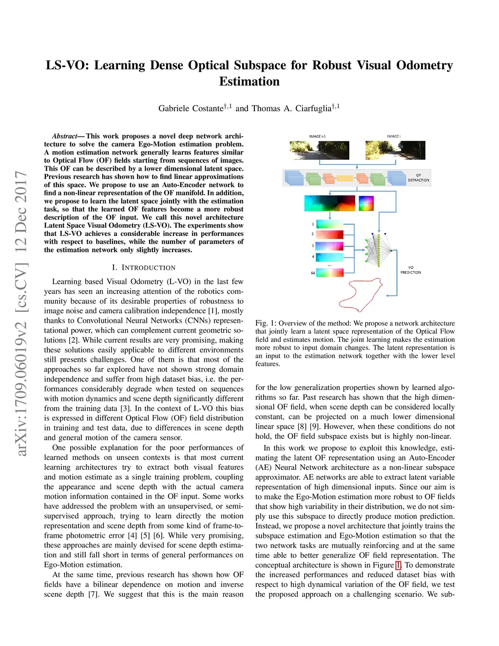 This work proposes a novel deep network architecture to solve the camera Ego-Motion estimation problem. A motion estimation network generally learns features similar to Optical Flow (OF) fields starting from sequences of images. This OF can be described by a lower dimensional latent space. Previous research has shown how to find linear approximations of this space. We propose to use an Auto-Encoder network to find a non-linear representation of the OF manifold. In addition, we propose to learn the latent space jointly with the estimation task, so that the learned OF features become a more robust description of the OF input. We call this novel architecture LS-VO. The experiments show that LS-VO achieves a considerable increase in performances in respect to baselines, while the number of parameters of the estimation network only slightly increases.