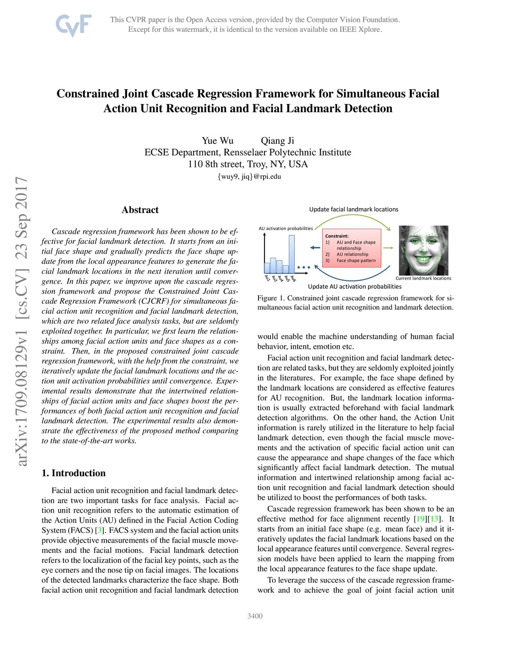 Constrained Joint Cascade Regression Framework for Simultaneous Facial