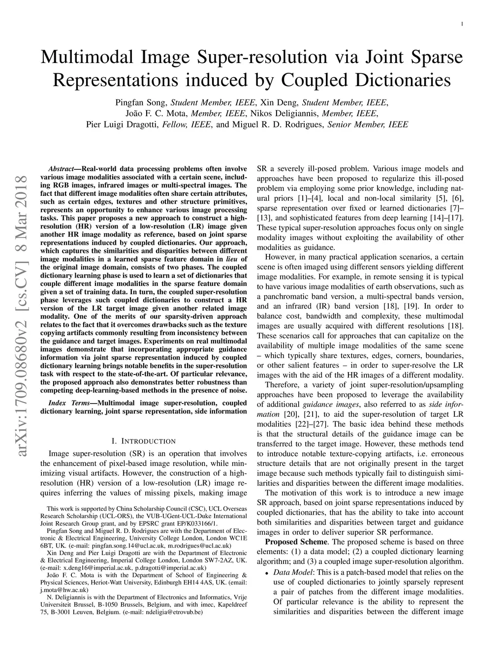 Multimodal Image Super-resolution via Joint Sparse Representations