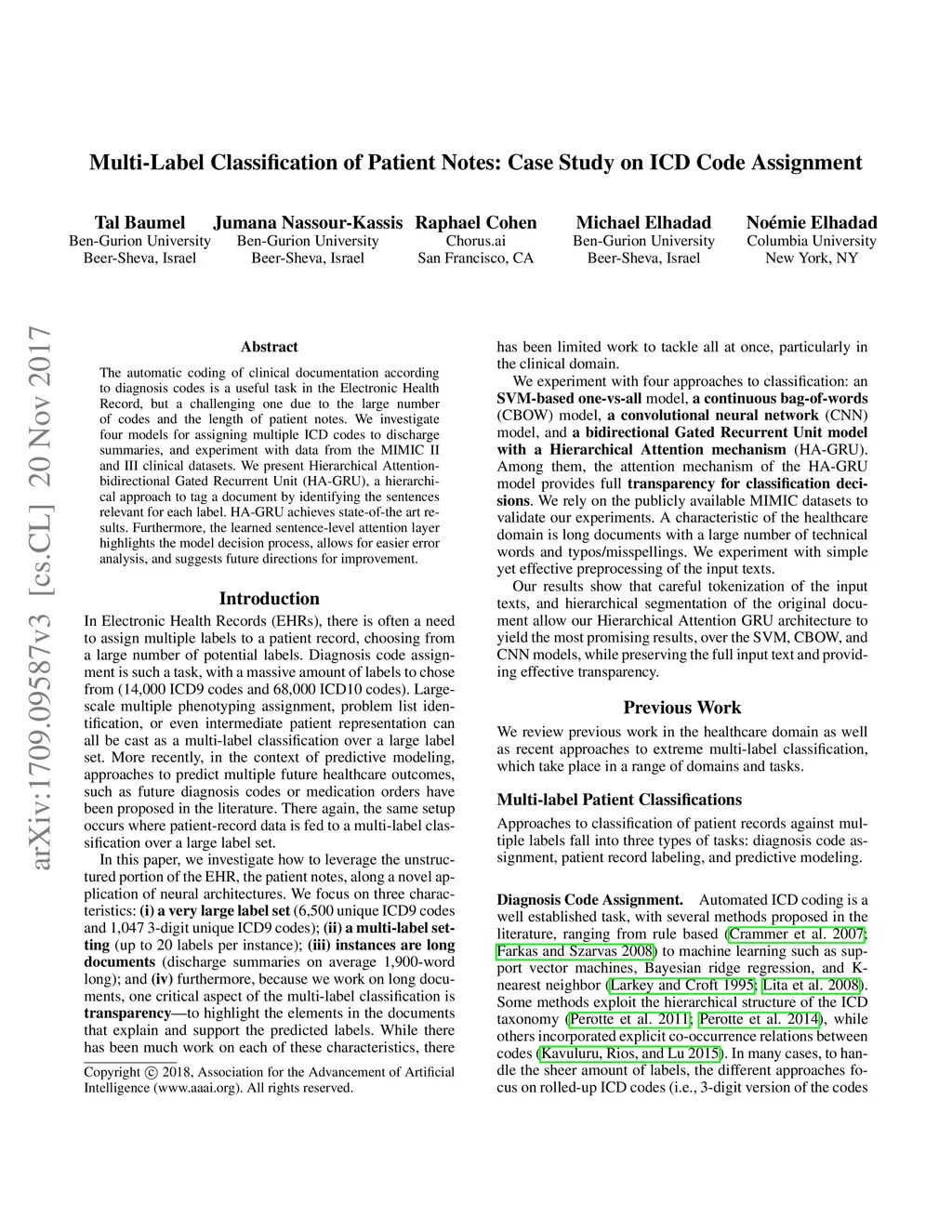 Multi-Label Classification of Patient Notes a Case Study on ICD Code