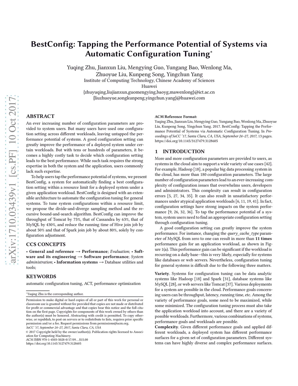 BestConfig: Tapping the Performance Potential of Systems via Automatic