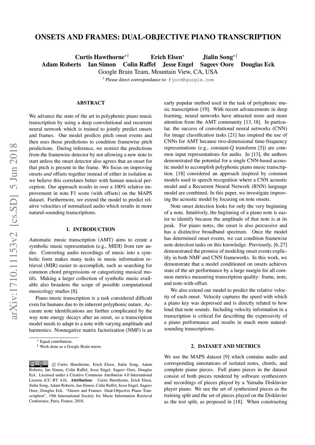 Onsets and Frames: Dual-Objective Piano Transcription