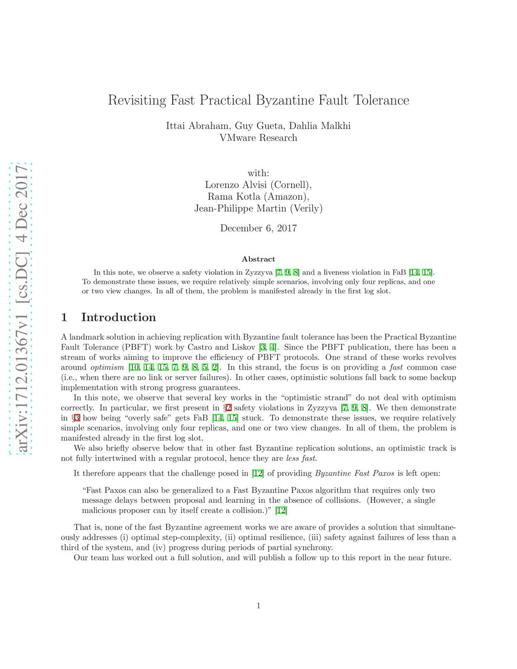 In this note, we observe a safety violation in Zyzzyva and a liveness violation in FaB. To demonstrate these issues, we require relatively simple scenarios, involving only four replicas, and one or two view changes. In all of them, the problem is manifested already in the first log slot.
