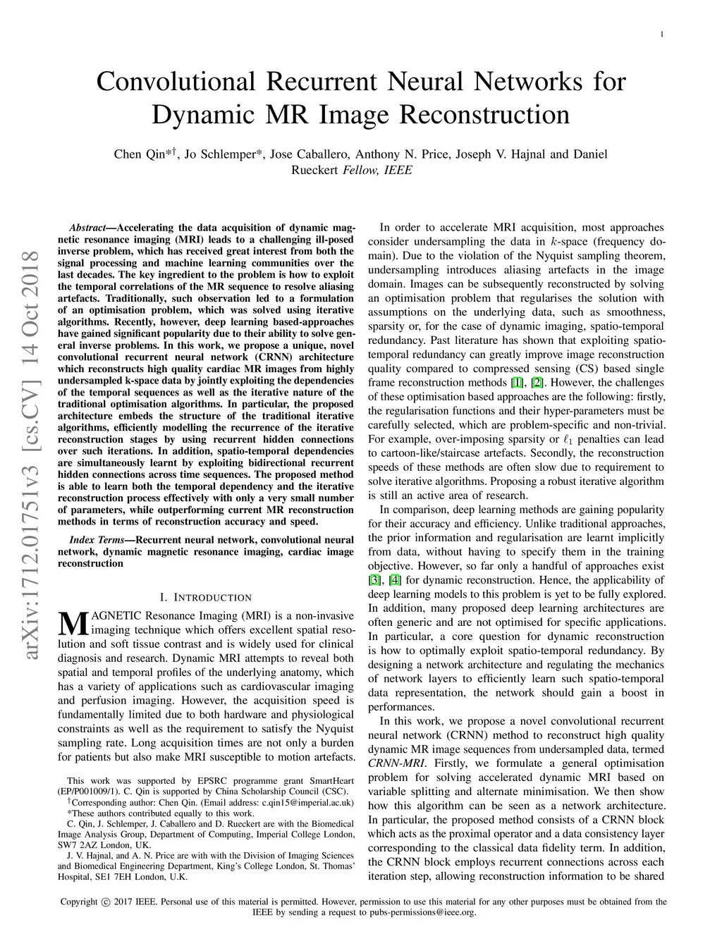Convolutional Recurrent Neural Networks for Dynamic MR Image