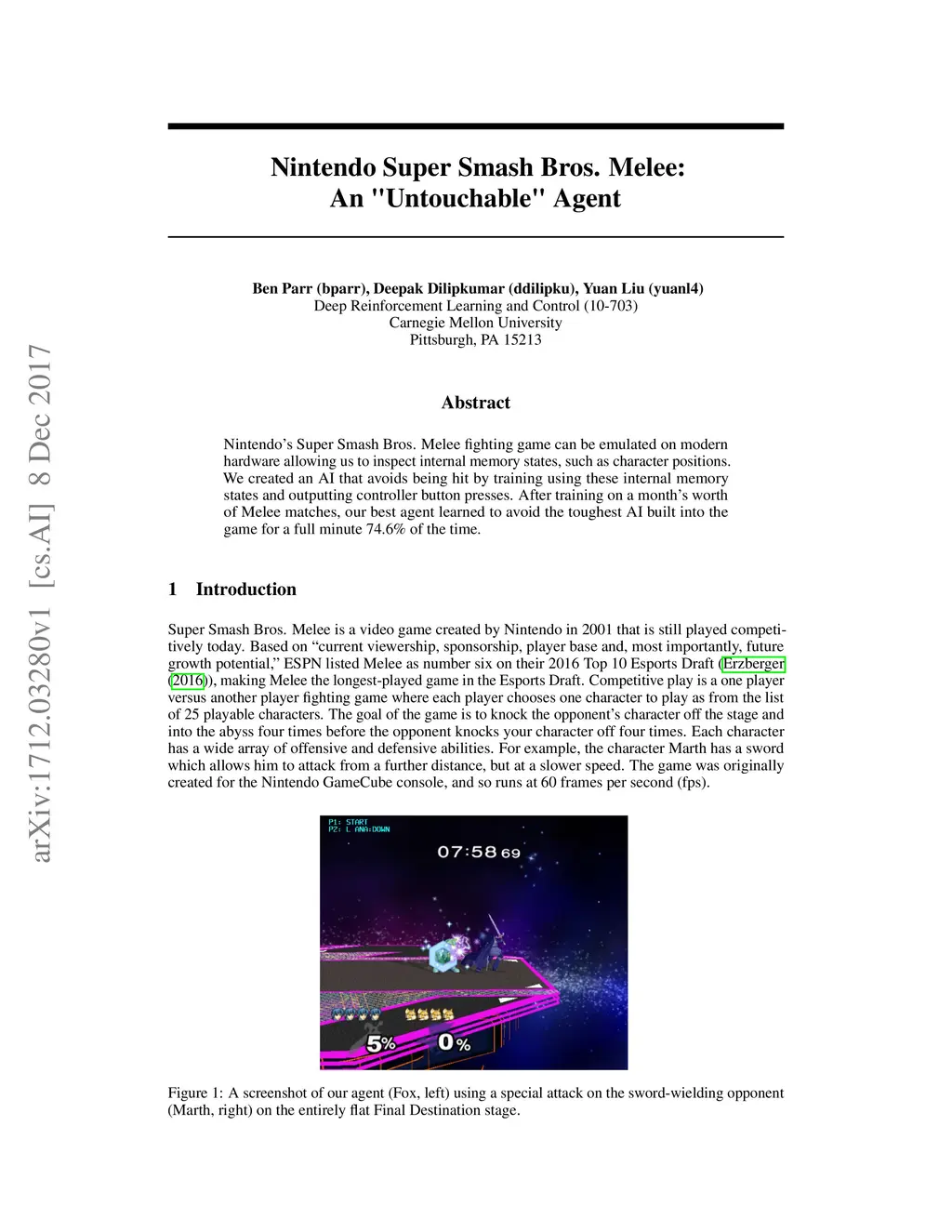 Nintendo Super Smash Bros. Melee: An "Untouchable" Agent