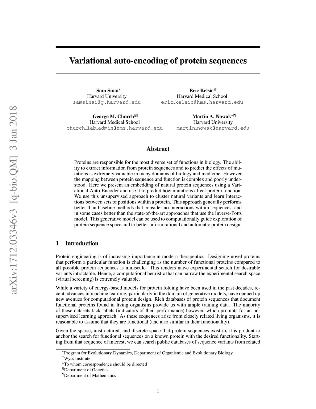Variational auto-encoding of protein sequences