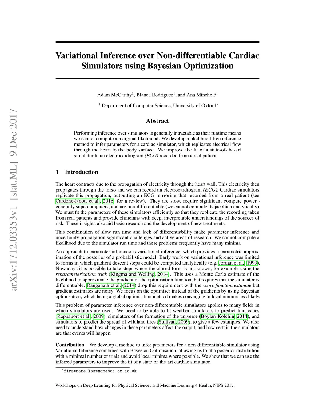 Variational Inference over Non-differentiable Cardiac Simulators using