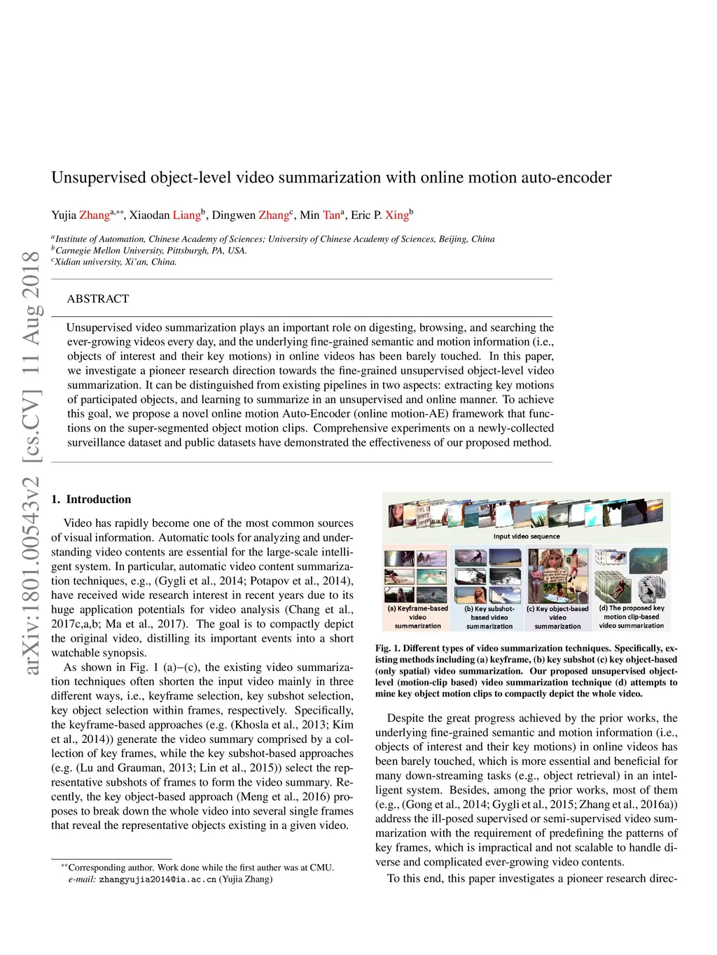 Unsupervised video summarization plays an important role on digesting, browsing, and searching the ever-growing videos every day, and the underlying fine-grained semantic and motion information (i.e., objects of interest and their key motions) in online videos has been barely touched. In this paper, we investigate a pioneer research direction towards the fine-grained unsupervised object-level video summarization. It can be distinguished from existing pipelines in two aspects: extracting key motions of participated objects, and learning to summarize in an unsupervised and online manner. To achieve this goal, we propose a novel online motion Auto-Encoder (online motion-AE) framework that functions on the super-segmented object motion clips. Comprehensive experiments on a newly-collected surveillance dataset and public datasets have demonstrated the effectiveness of our proposed method.