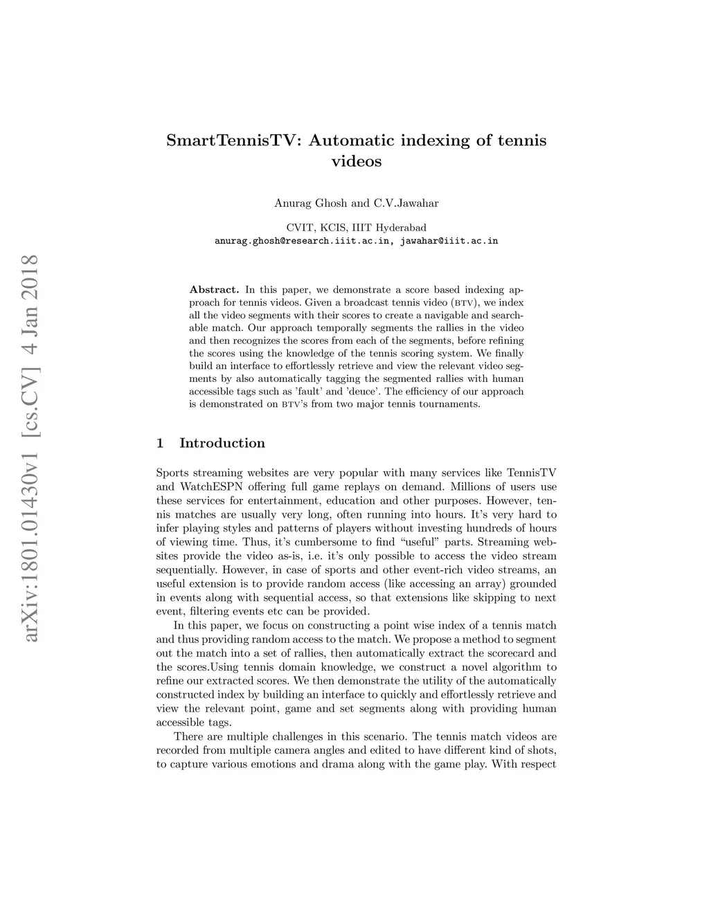 SmartTennisTV: Automatic indexing of tennis videos