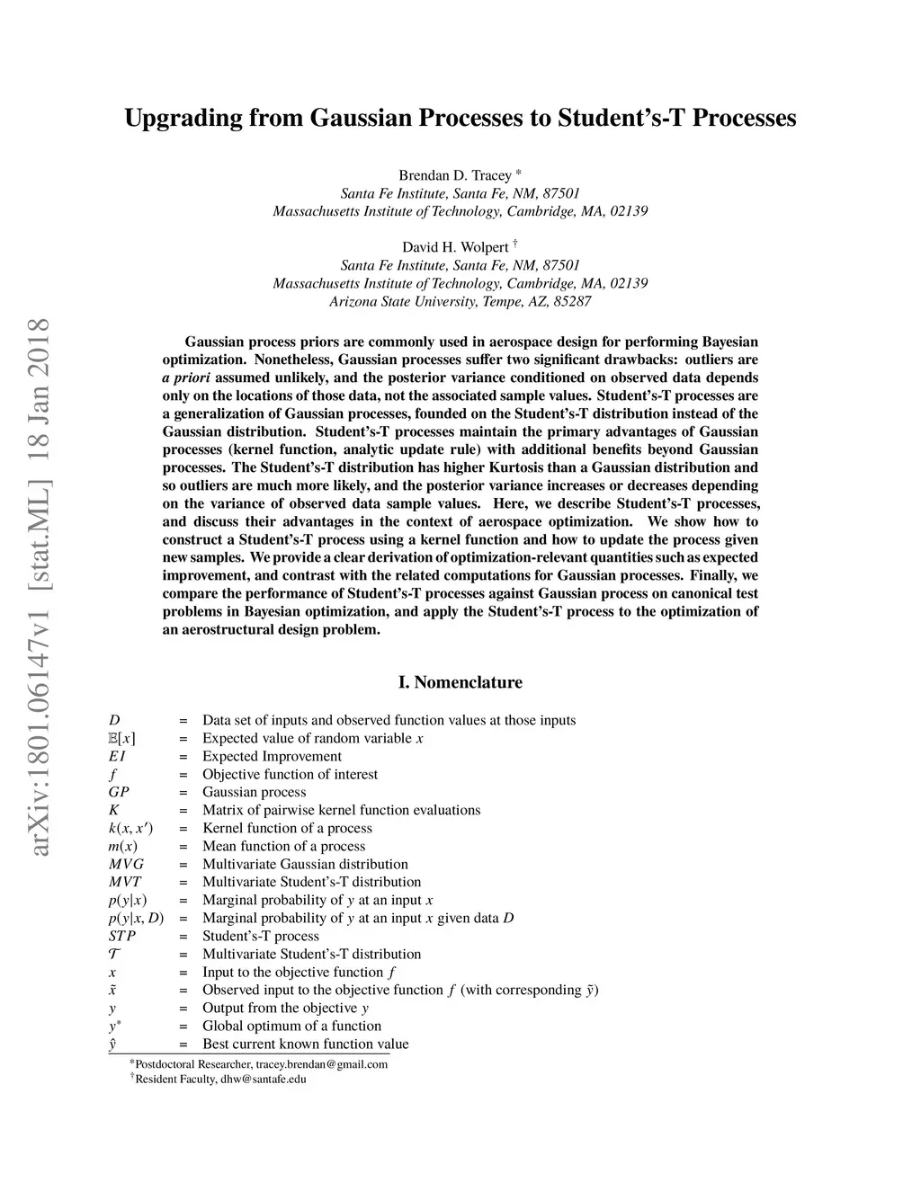 Gaussian process priors are commonly used in aerospace design for performing Bayesian optimization. Nonetheless, Gaussian processes suffer two significant drawbacks: outliers are a priori assumed unlikely, and the posterior variance conditioned on observed data depends only on the locations of those data, not the associated sample values. Student's-T processes are a generalization of Gaussian processes, founded on the Student's-T distribution instead of the Gaussian distribution. Student's-T processes maintain the primary advantages of Gaussian processes (kernel function, analytic update rule) with additional benefits beyond Gaussian processes. The Student's-T distribution has higher Kurtosis than a Gaussian distribution and so outliers are much more likely, and the posterior variance increases or decreases depending on the variance of observed data sample values. Here, we describe Student's-T processes, and discuss their advantages in the context of aerospace optimization. We show how to construct a Student's-T process using a kernel function and how to update the process given new samples. We provide a clear derivation of optimization-relevant quantities such as expected improvement, and contrast with the related computations for Gaussian processes. Finally, we compare the performance of Student's-T processes against Gaussian process on canonical test problems in Bayesian optimization, and apply the Student's-T process to the optimization of an aerostructural design problem.
