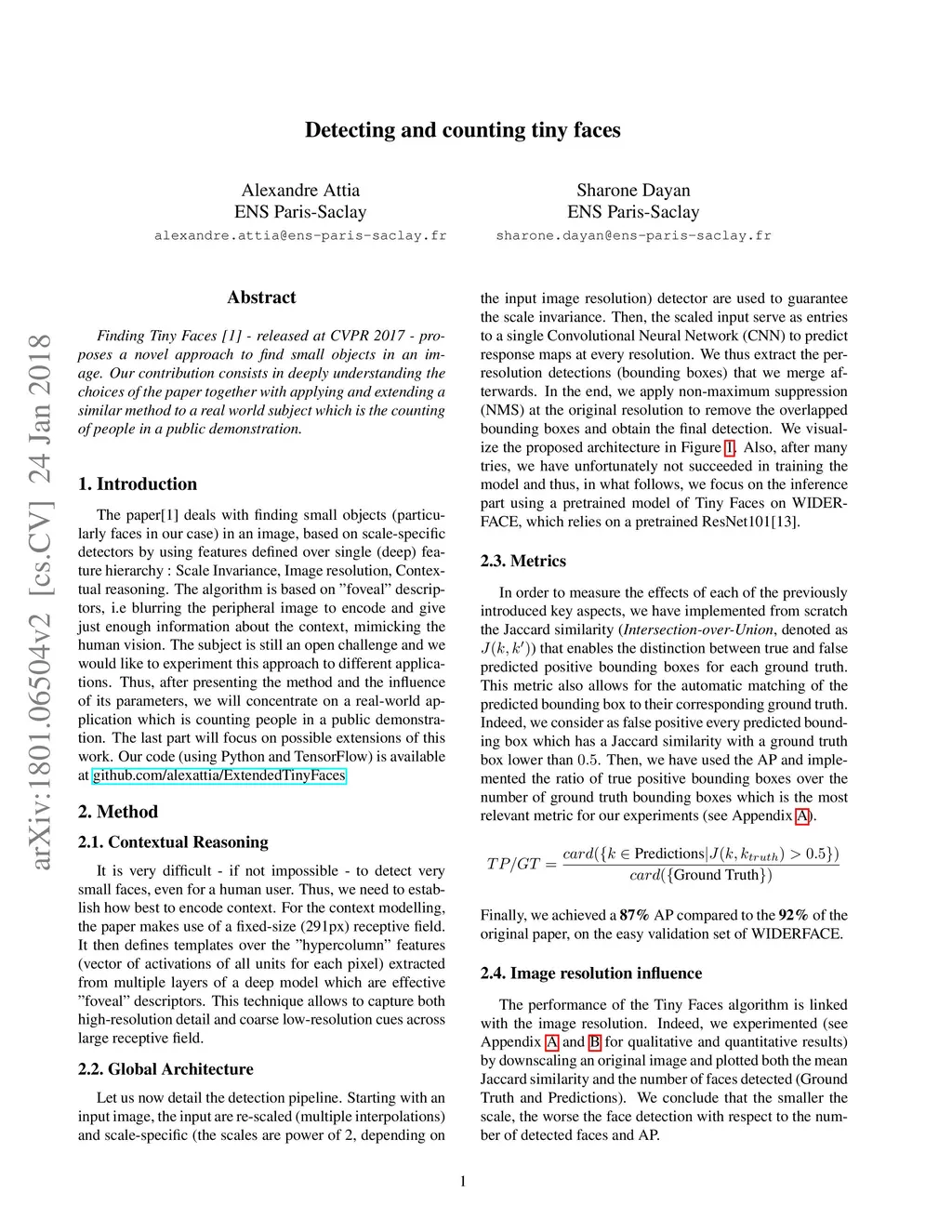 Finding Tiny Faces (by Hu and Ramanan) proposes a novel approach to find small objects in an image. Our contribution consists in deeply understanding the choices of the paper together with applying and extending a similar method to a real world subject which is the counting of people in a public demonstration.