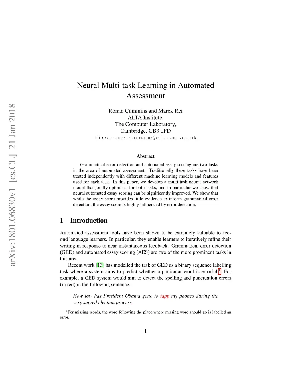 Neural Multi-task Learning in Automated Assessment