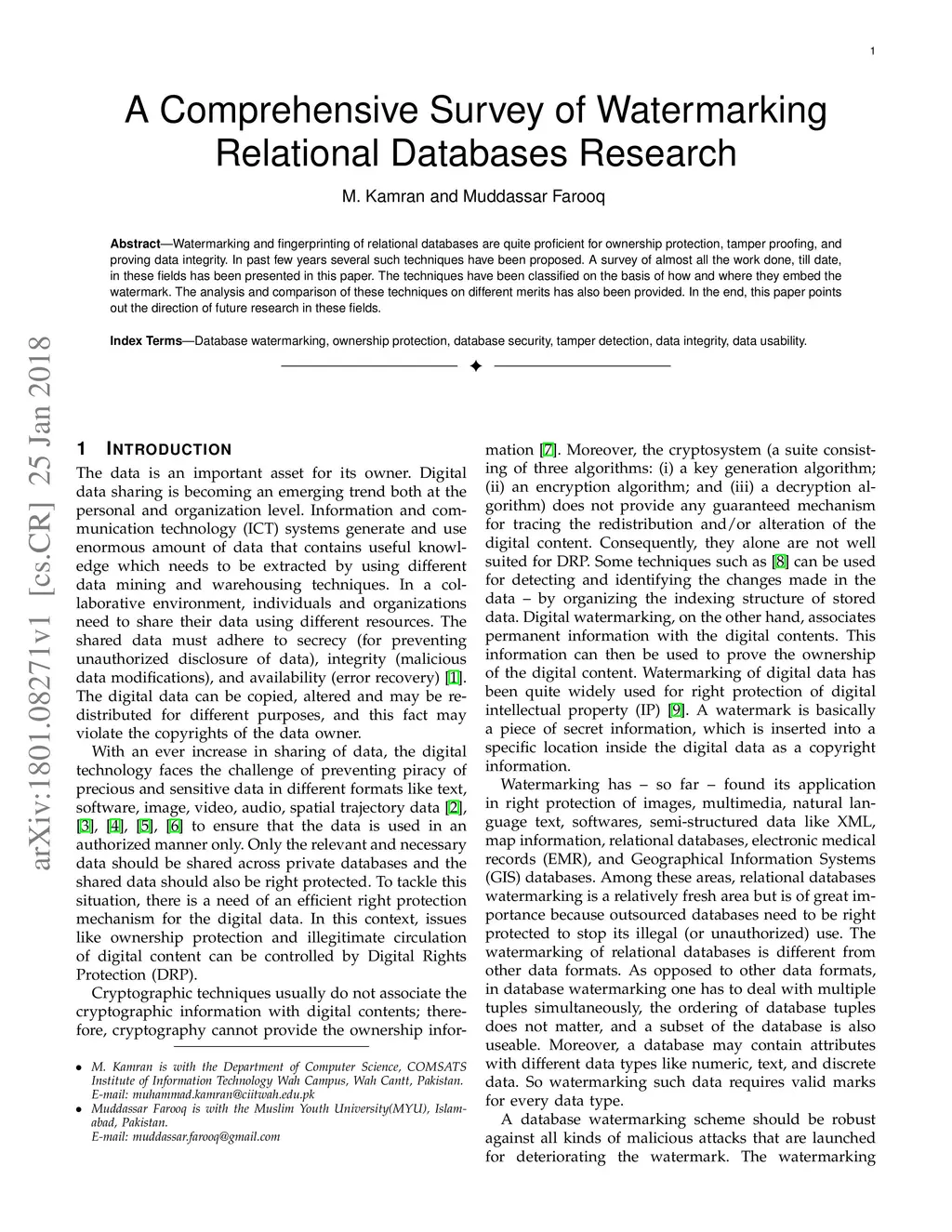 A Comprehensive Survey of Watermarking Relational Databases Research