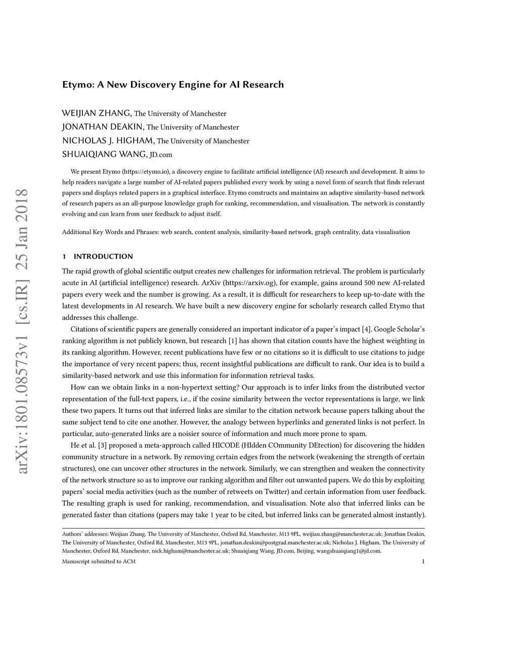 Etymo: A New Discovery Engine for AI Research