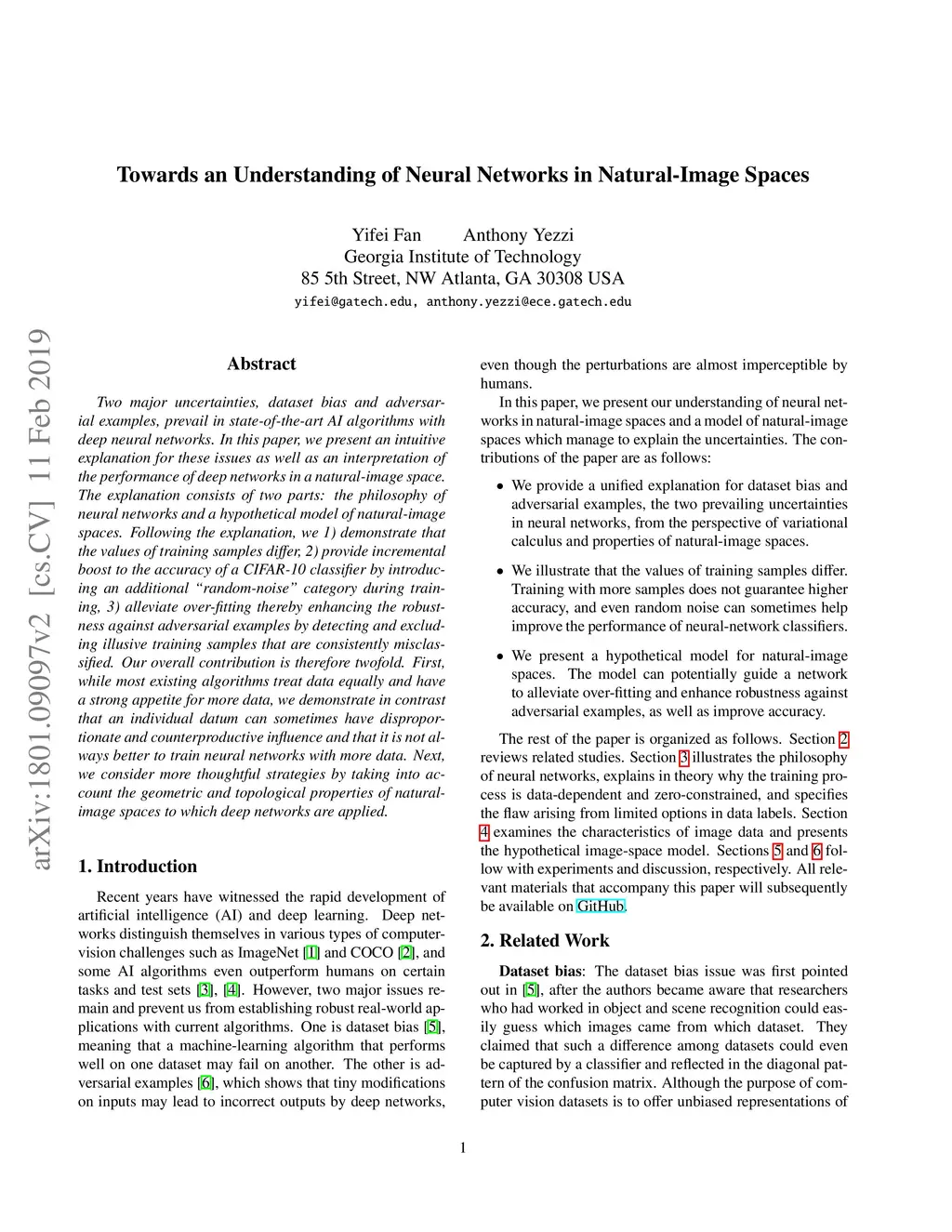 Two major uncertainties, dataset bias and adversarial examples, prevail in state-of-the-art AI algorithms with deep neural networks. In this paper, we present an intuitive explanation for these issues as well as an interpretation of the performance of deep networks in a natural-image space. The explanation consists of two parts: the philosophy of neural networks and a hypothetical model of natural-image spaces. Following the explanation, we 1) demonstrate that the values of training samples differ, 2) provide incremental boost to the accuracy of a CIFAR-10 classifier by introducing an additional "random-noise" category during training, 3) alleviate over-fitting thereby enhancing the robustness against adversarial examples by detecting and excluding illusive training samples that are consistently misclassified. Our overall contribution is therefore twofold. First, while most existing algorithms treat data equally and have a strong appetite for more data, we demonstrate in contrast that an individual datum can sometimes have disproportionate and counterproductive influence and that it is not always better to train neural networks with more data. Next, we consider more thoughtful strategies by taking into account the geometric and topological properties of natural-image spaces to which deep networks are applied.