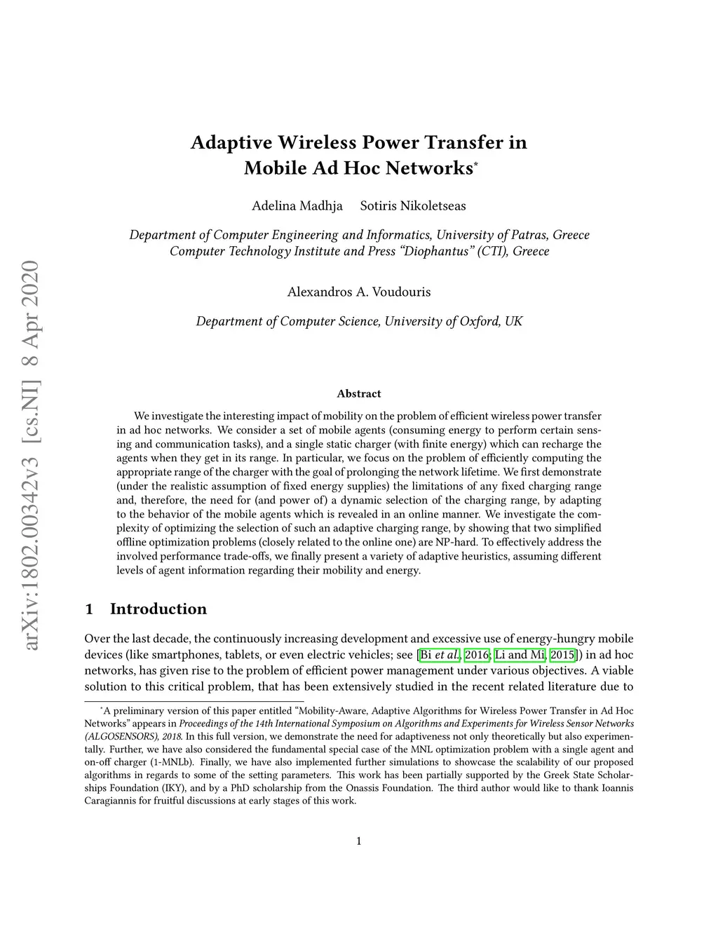 Adaptive wireless power transfer in mobile Ad Hoc networks