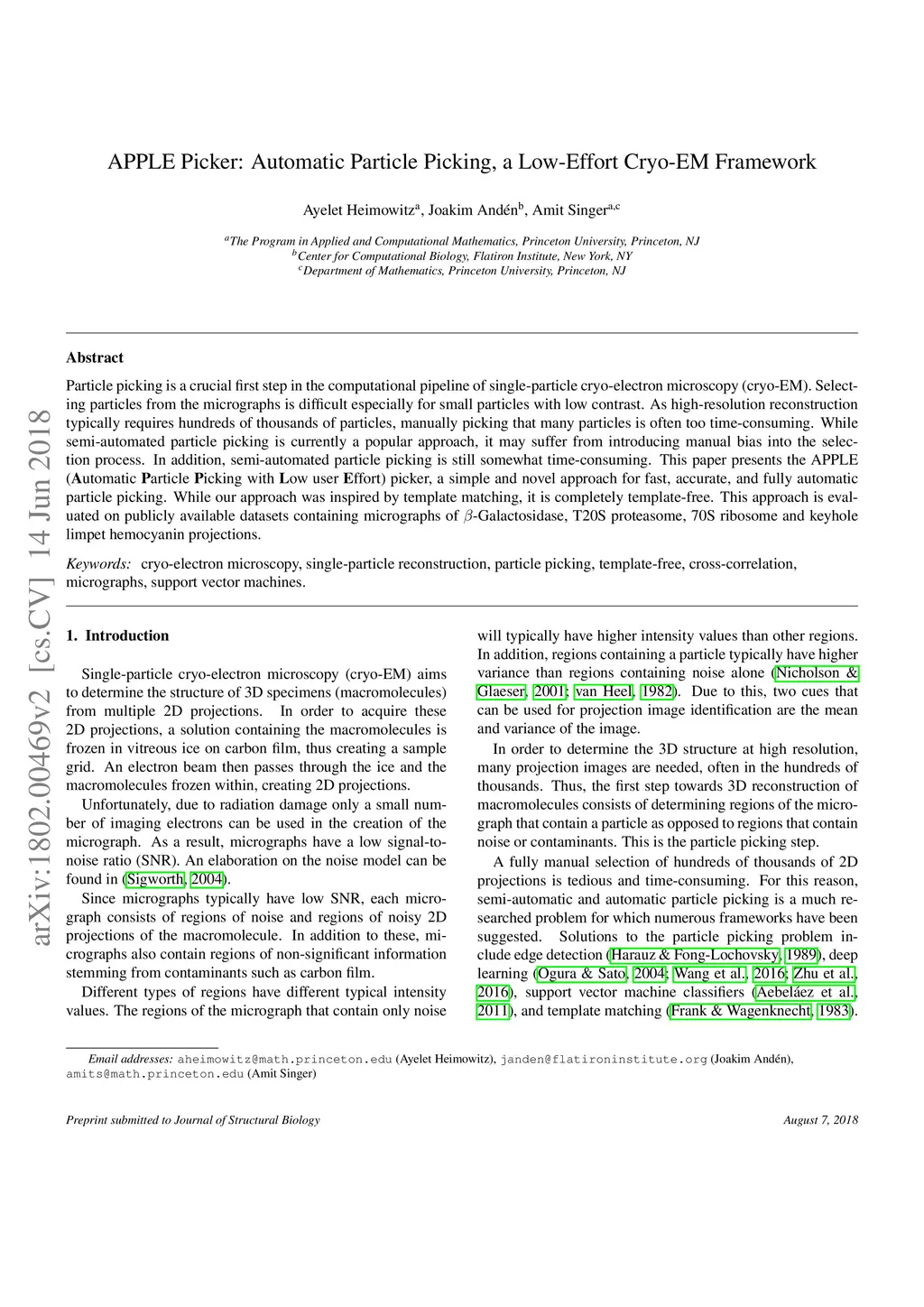 APPLE Picker: Automatic Particle Picking, a Low-Effort Cryo-EM Framework
