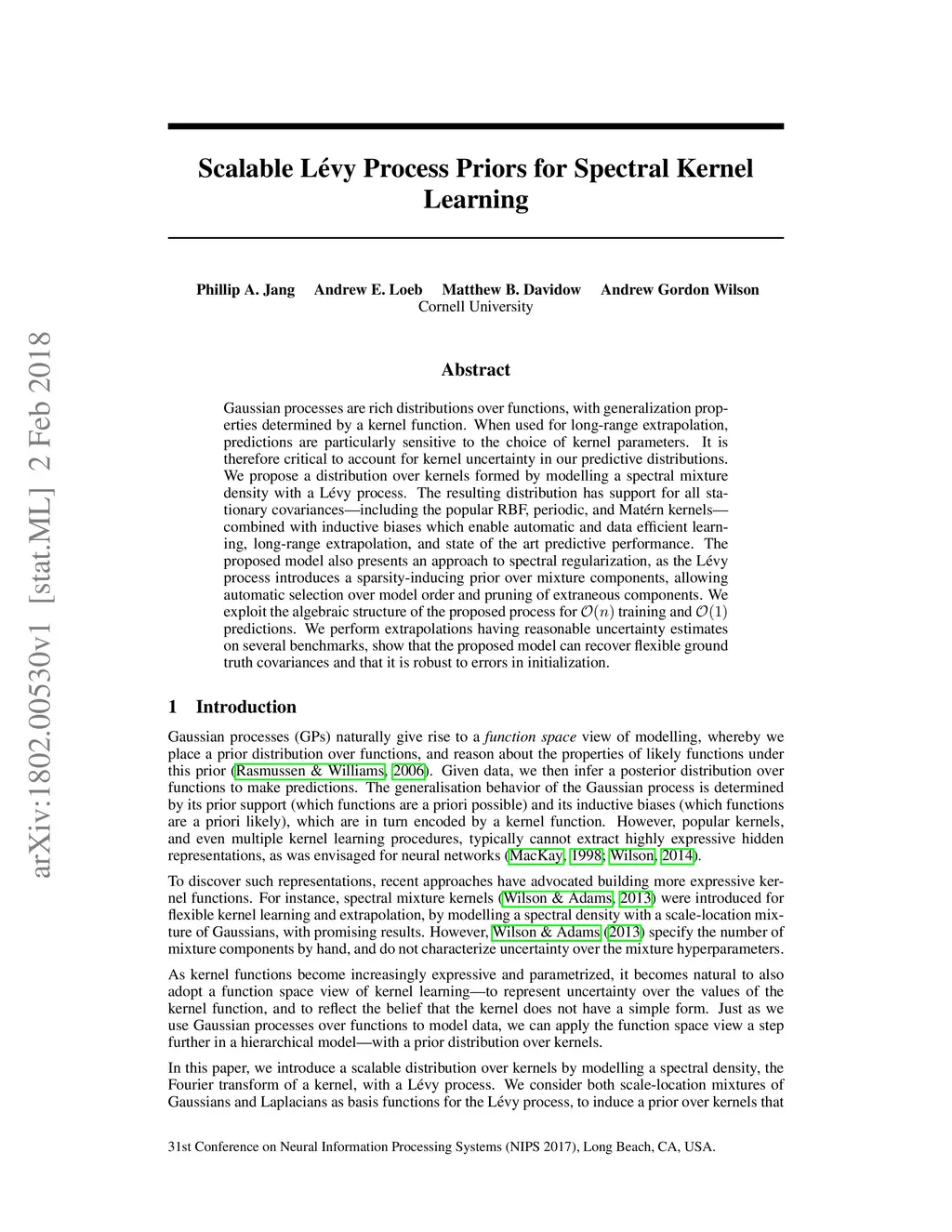 Gaussian processes are rich distributions over functions, with generalization properties determined by a kernel function. When used for long-range extrapolation, predictions are particularly sensitive to the choice of kernel parameters. It is therefore critical to account for kernel uncertainty in our predictive distributions. We propose a distribution over kernels formed by modelling a spectral mixture density with a L\évy process. The resulting distribution has support for all stationary covariances--including the popular RBF, periodic, and Mat\érn kernels--combined with inductive biases which enable automatic and data efficient learning, long-range extrapolation, and state of the art predictive performance. The proposed model also presents an approach to spectral regularization, as the L\évy process introduces a sparsity-inducing prior over mixture components, allowing automatic selection over model order and pruning of extraneous components. We exploit the algebraic structure of the proposed process for training and predictions. We perform extrapolations having reasonable uncertainty estimates on several benchmarks, show that the proposed model can recover flexible ground truth covariances and that it is robust to errors in initialization.