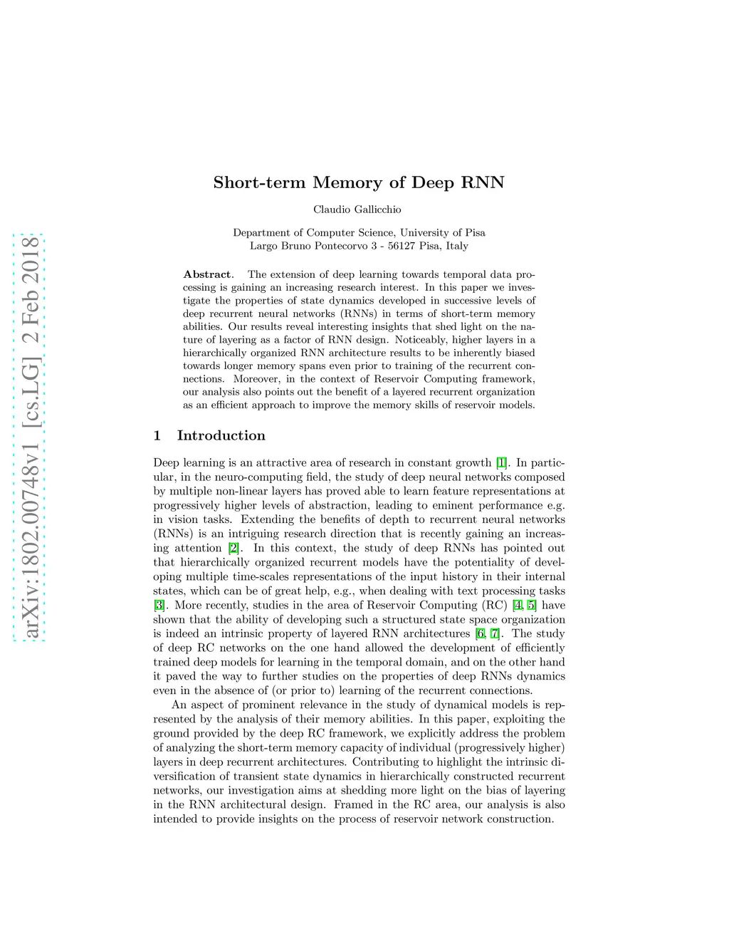 Short-term Memory of Deep RNN