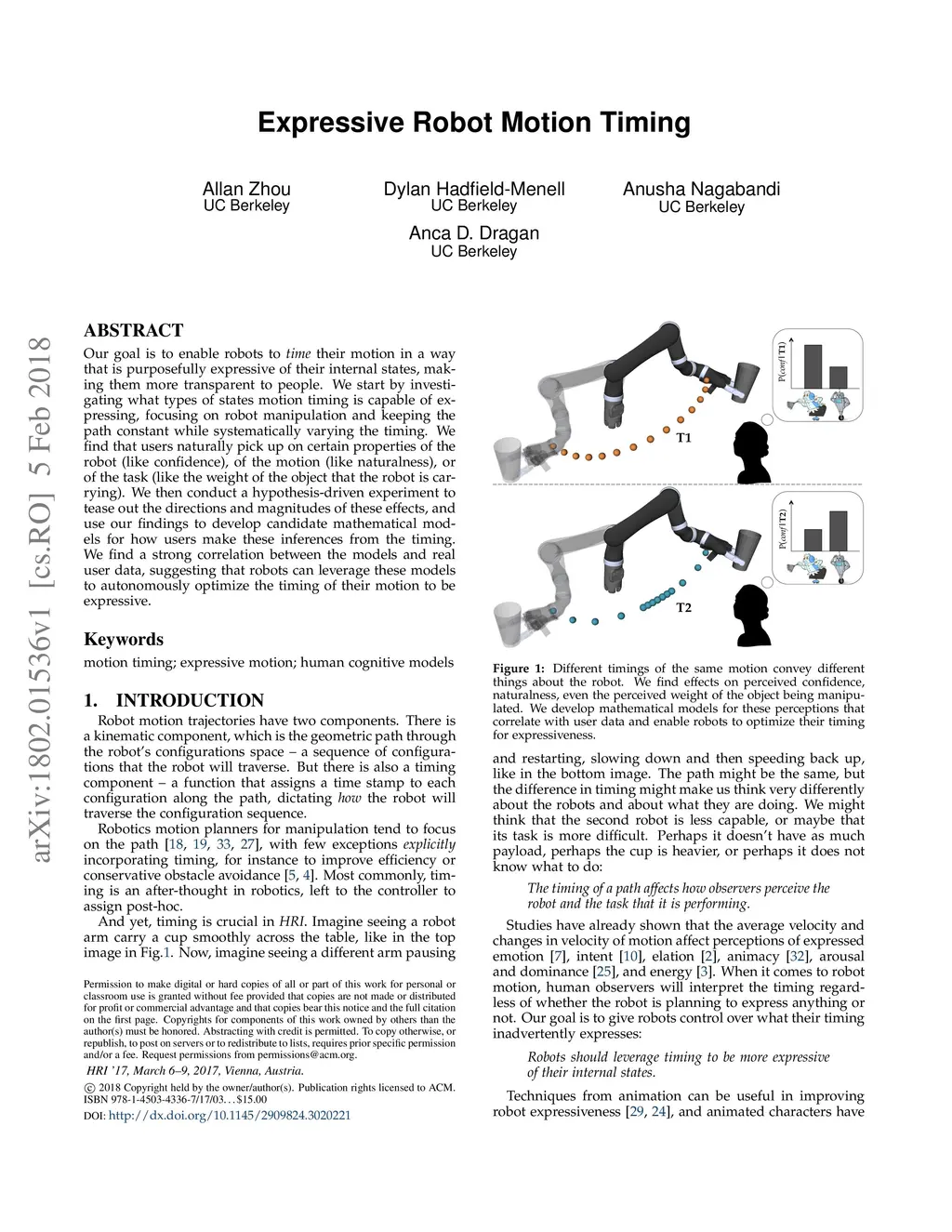 Our goal is to enable robots to \emph{time} their motion in a way that is purposefully expressive of their internal states, making them more transparent to people. We start by investigating what types of states motion timing is capable of expressing, focusing on robot manipulation and keeping the path constant while systematically varying the timing. We find that users naturally pick up on certain properties of the robot (like confidence), of the motion (like naturalness), or of the task (like the weight of the object that the robot is carrying). We then conduct a hypothesis-driven experiment to tease out the directions and magnitudes of these effects, and use our findings to develop candidate mathematical models for how users make these inferences from the timing. We find a strong correlation between the models and real user data, suggesting that robots can leverage these models to autonomously optimize the timing of their motion to be expressive.