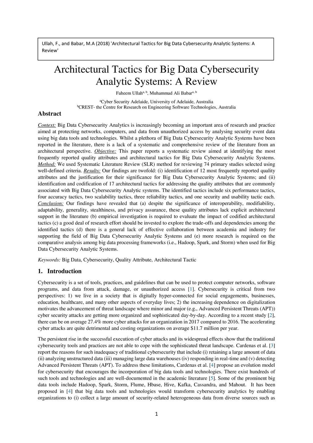 Architectural Tactics for Big Data Cybersecurity Analytic Systems: A