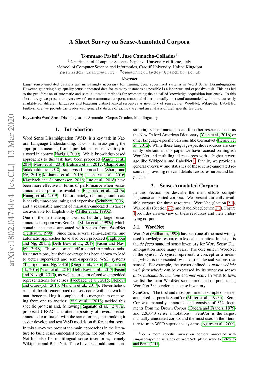 Large sense-annotated datasets are increasingly necessary for training deep supervised systems in Word Sense Disambiguation. However, gathering high-quality sense-annotated data for as many instances as possible is a laborious and expensive task. This has led to the proliferation of automatic and semi-automatic methods for overcoming the so-called knowledge-acquisition bottleneck. In this short survey we present an overview of sense-annotated corpora, annotated either manually- or (semi)automatically, that are currently available for different languages and featuring distinct lexical resources as inventory of senses, i.e. WordNet, Wikipedia, BabelNet. Furthermore, we provide the reader with general statistics of each dataset and an analysis of their specific features.