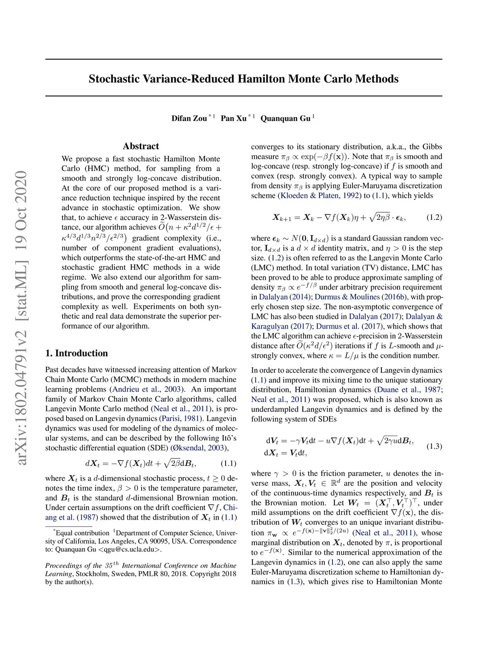 Stochastic Variance-Reduced Hamilton Monte Carlo Methods