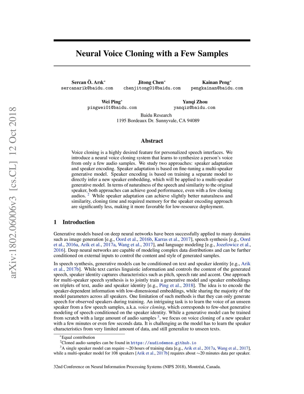 Neural Voice Cloning with a Few Samples